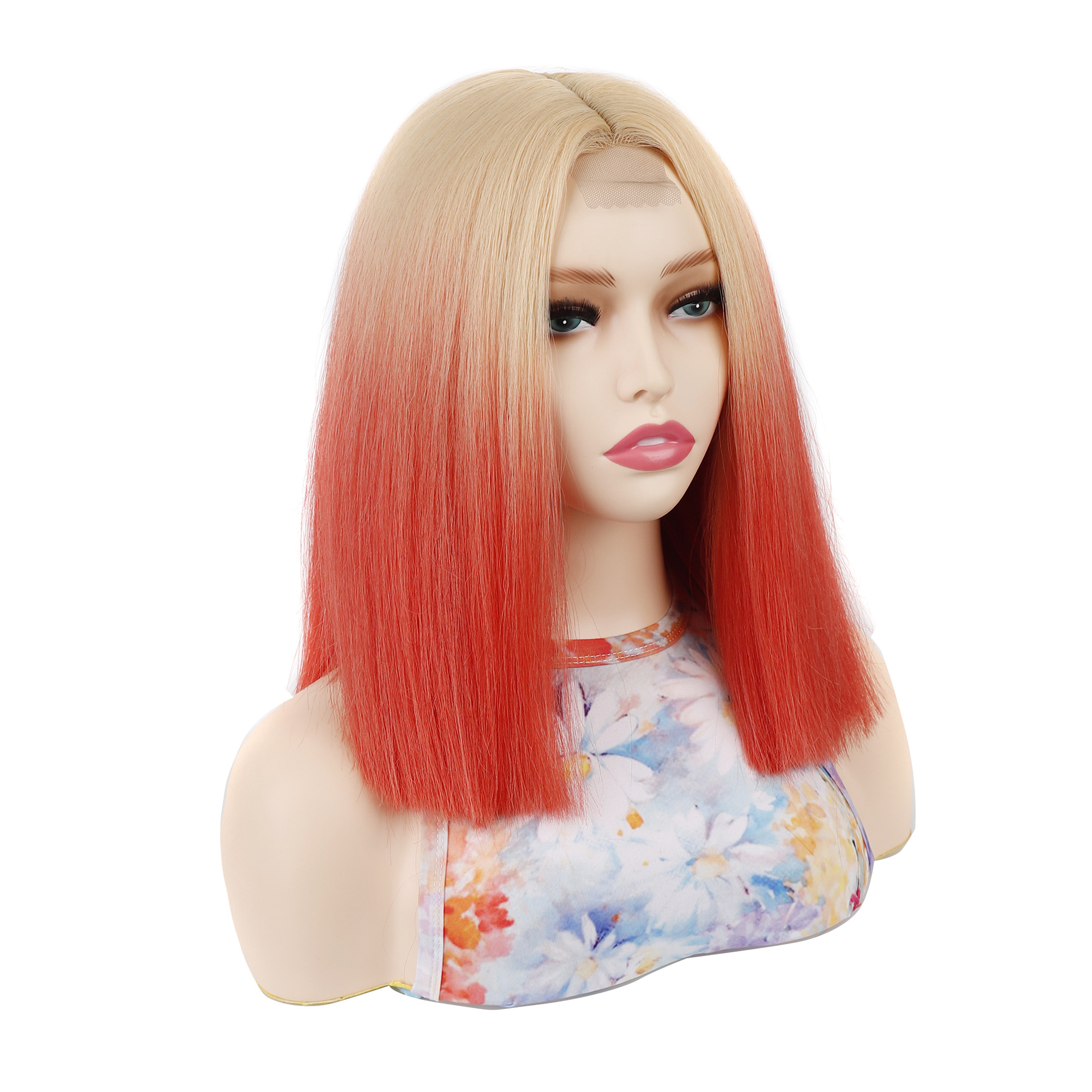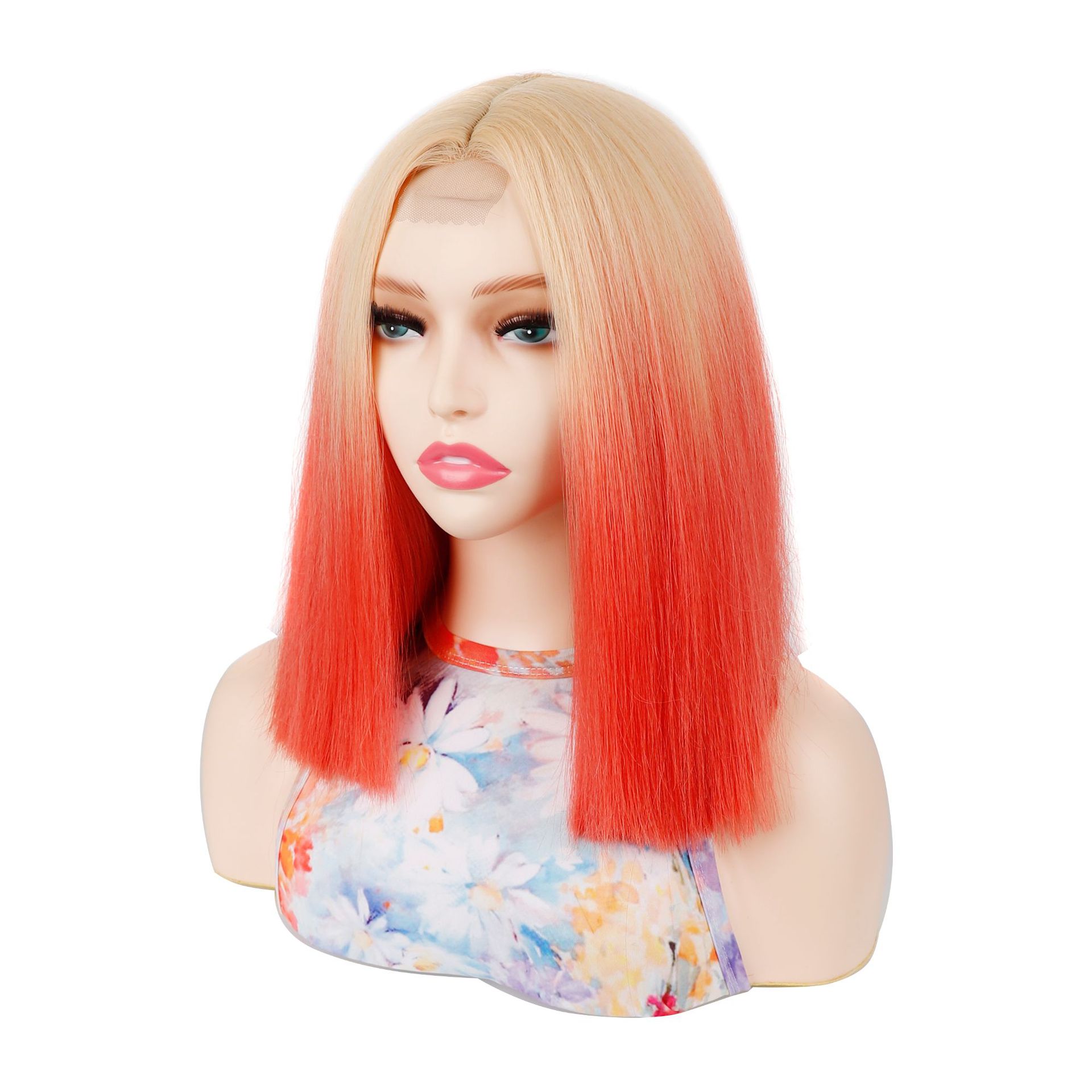 Product Name: Little Front Lace Wig Headband Light Brown Gradient Orange Red Short Hair Wig Headband Side Parted Wave Wig Headband