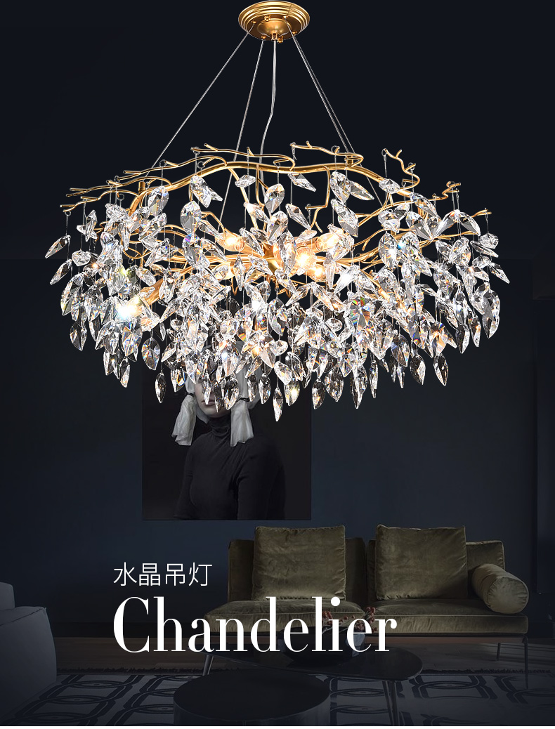 post-modern light luxury chandelier chandelier crystal lamp dining room bedroom stylish and personalized french designer creative lamp in the living room 中文版
