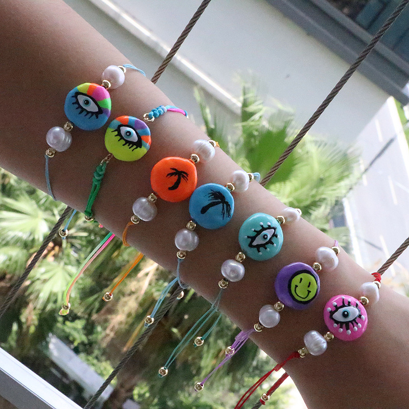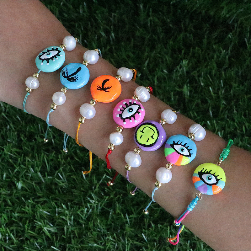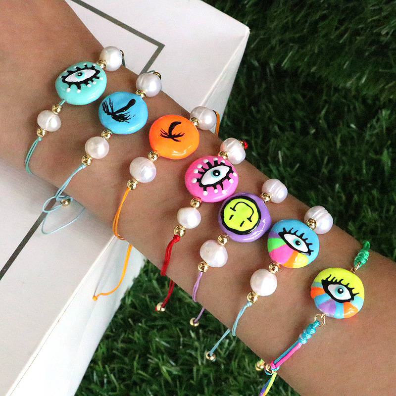 new design colorful oil necklace eyes freshwater pearl evil eye charm bracelet pearl shape random 中文版