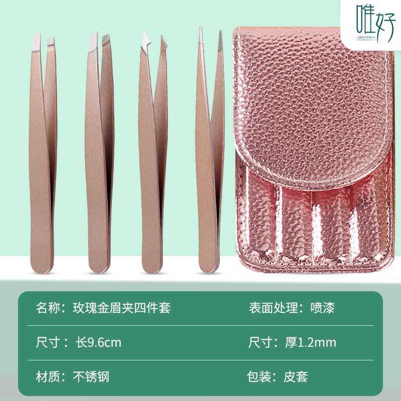 Pink Rose Gold Suit (Op Bag) Single Clip 9G: eye Tweezer 4-Piece Set
