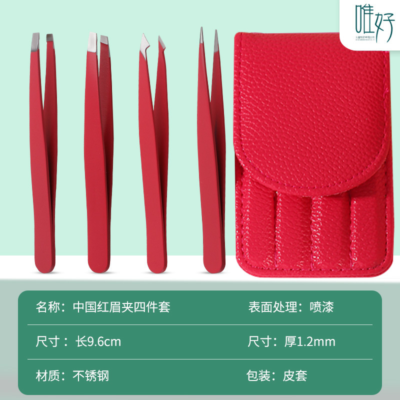 Red Suit (Leather Case) Single Clip 9G: eye Tweezer 4-Piece Set