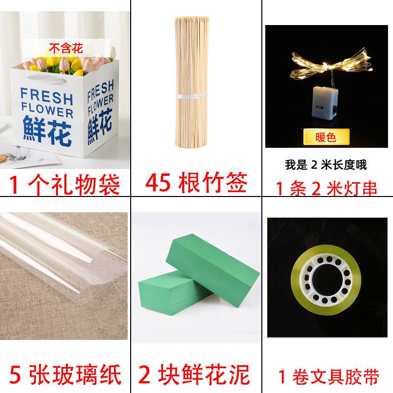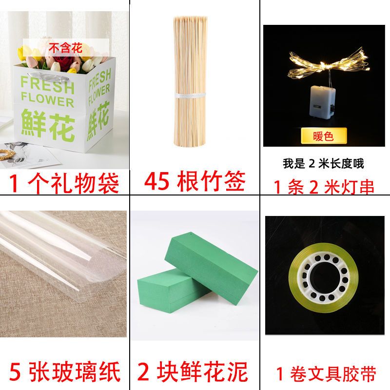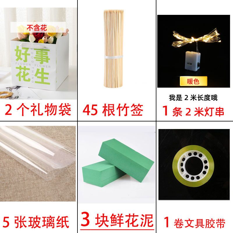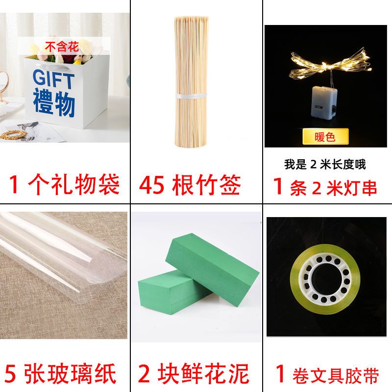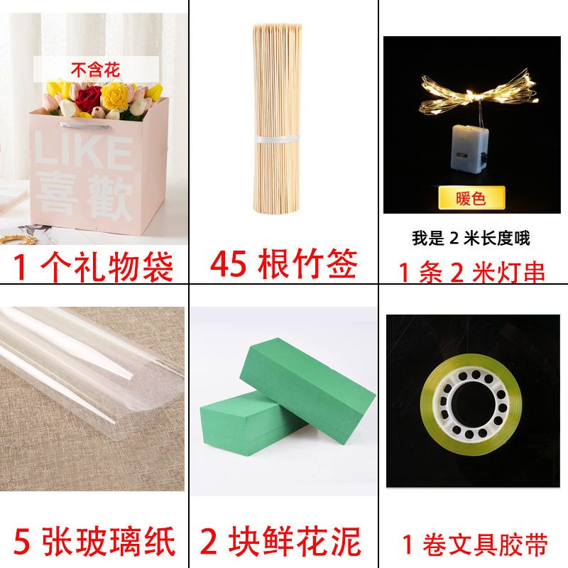 send greeting cards-like; 1 bag 2 flower mud +45 bamboo stick 5 glass paper 1 light 1 glue