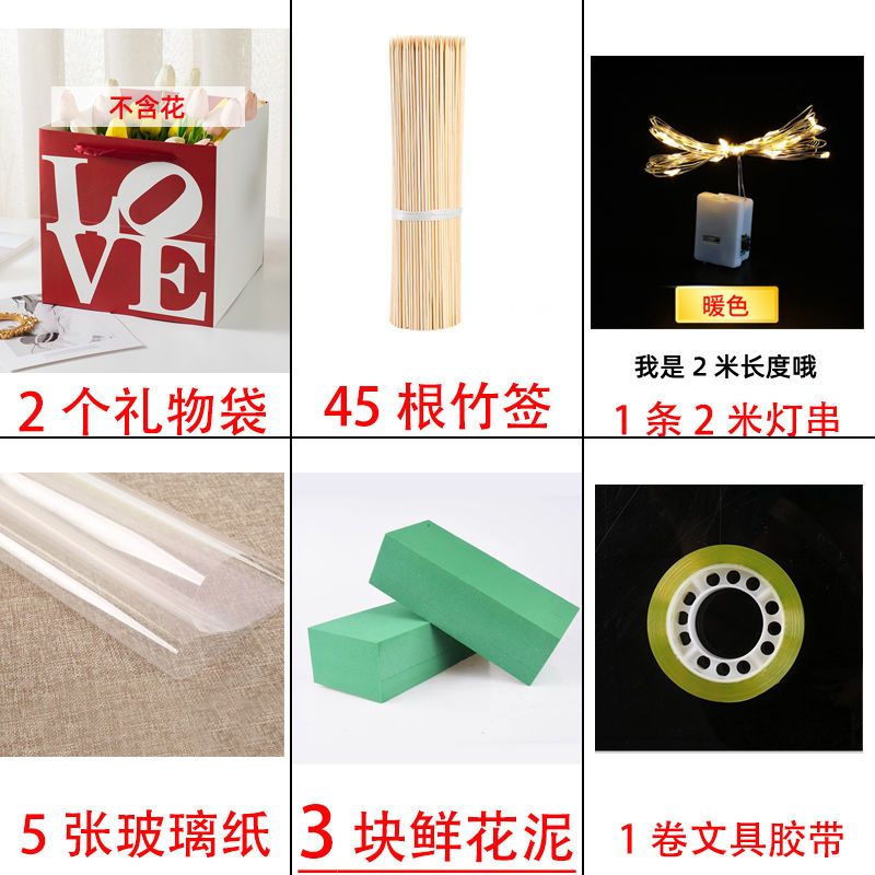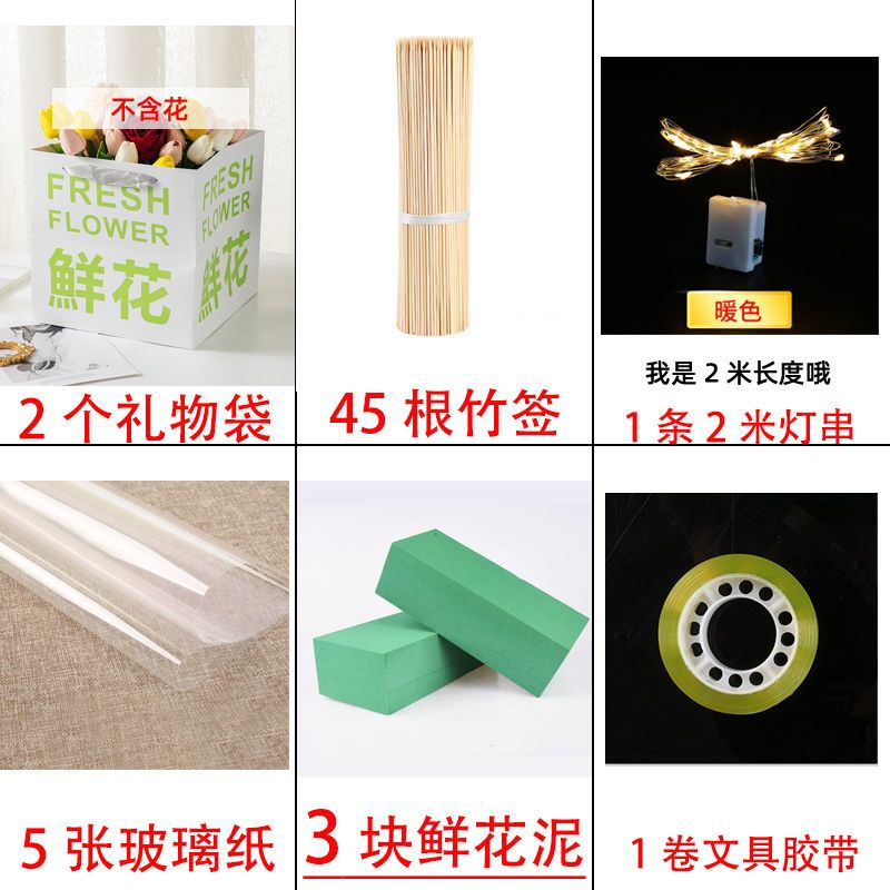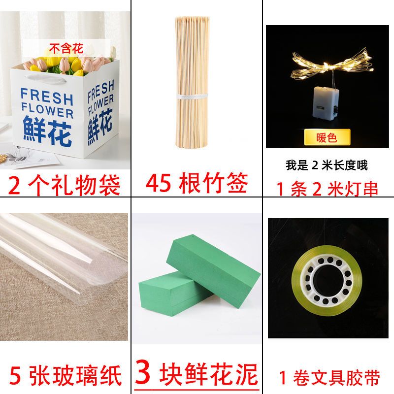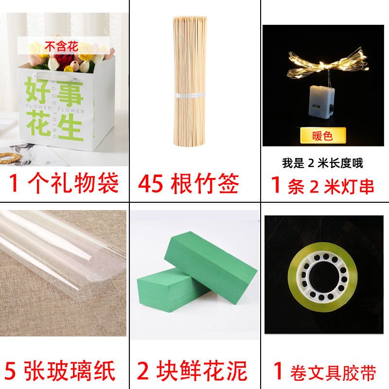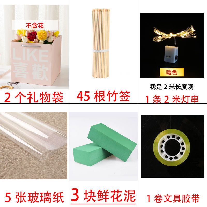 send greeting cards-like; 1 bag 2 flower mud +45 bamboo stick 5 glass paper 1 light 1 glue