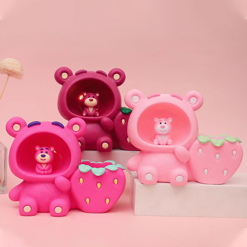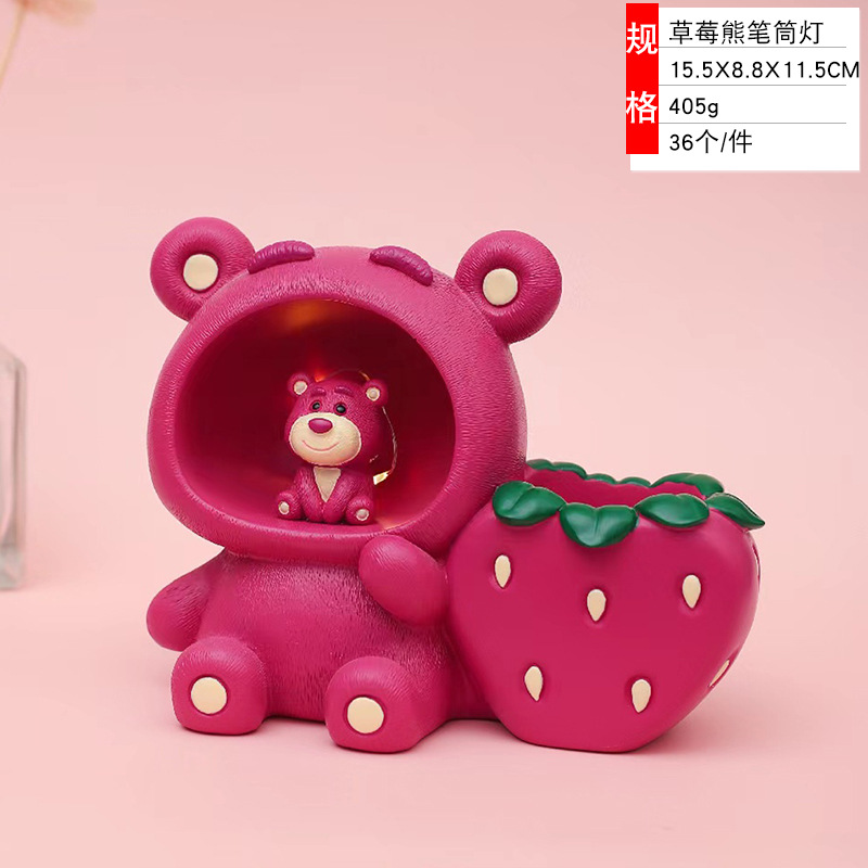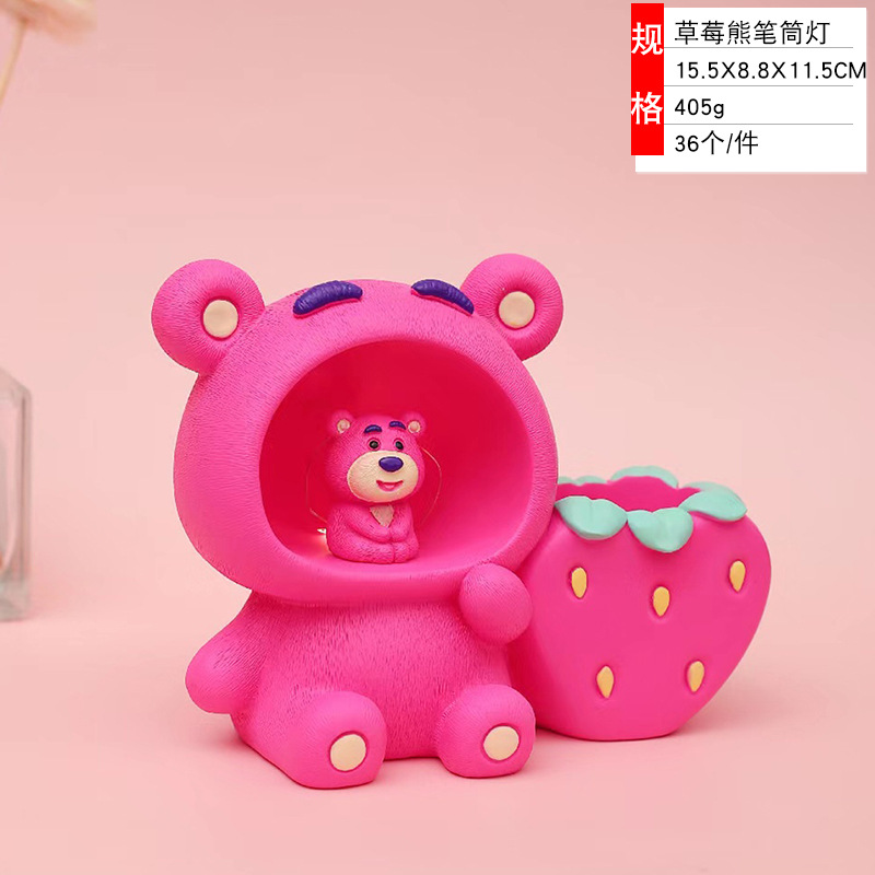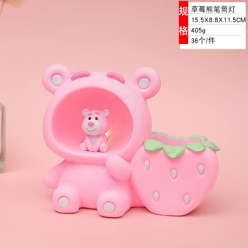 Creative Strawberry Bear Pen Lamp Star Lamp Penholder Table Decorations Decoration Resin Crafts Student Small Gift 中文版
