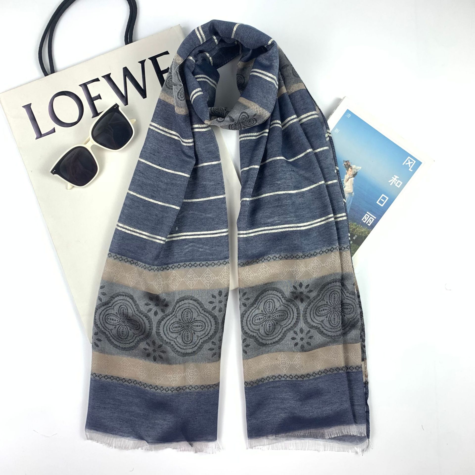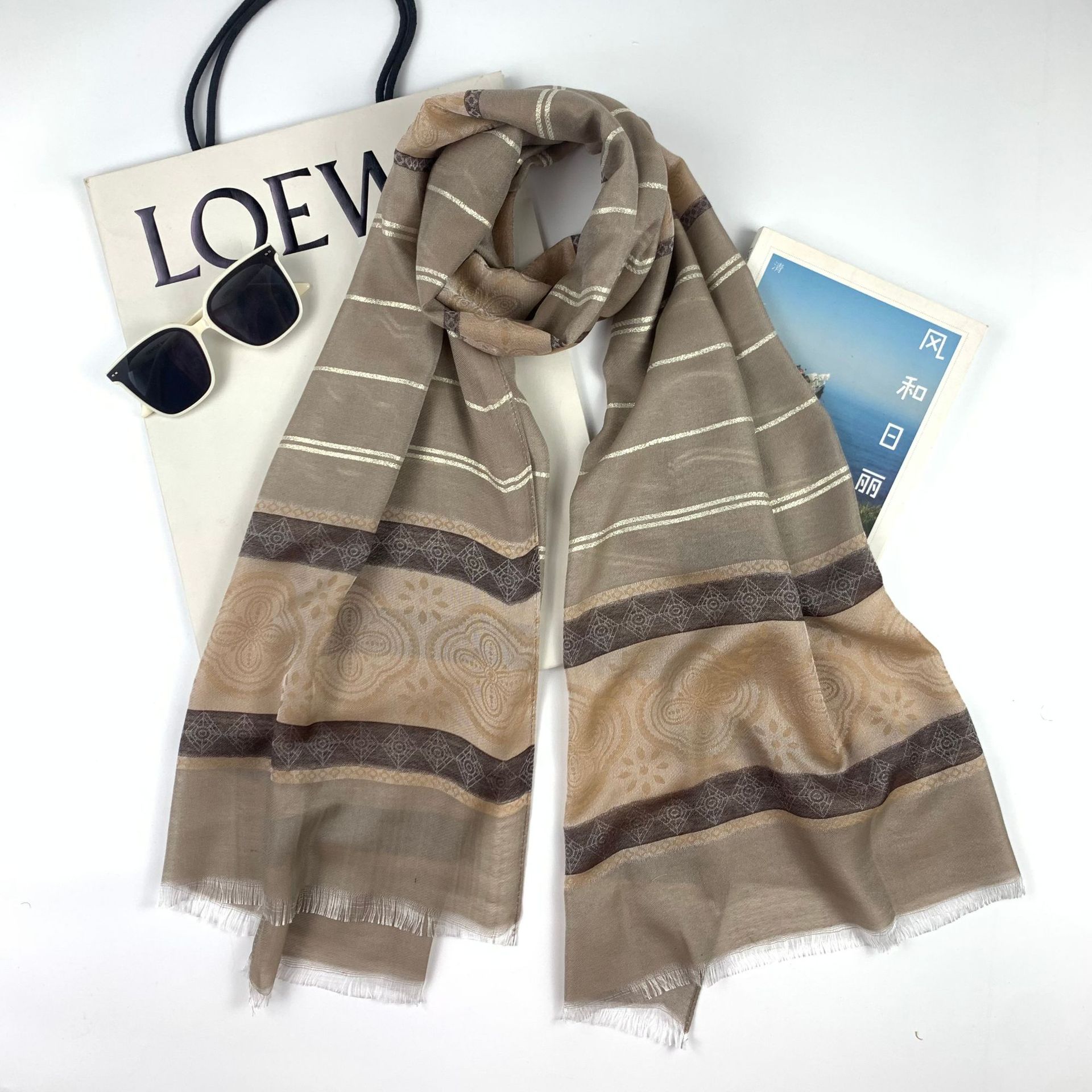 silk-like jacquard long scarf gold silk four-leaf clover scarf muslim middle east scarf female cross-border wholesale factory direct sales