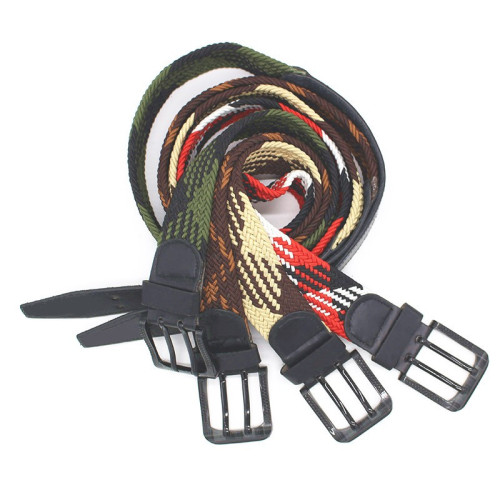 new simple double pin buckle elastic nylon woven belt fashion color woven leather belt factory direct sale 中文版