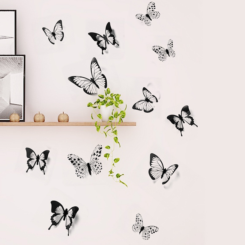 18 pieces of black and white colored glitter 3D butterfly wall stickers 500 pieces per box