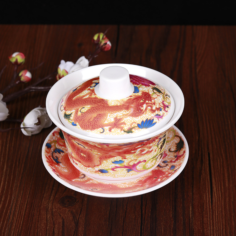 melamine enamel cover bowl tea tea cover bowl tea three bowl eight treasures tea cup large bowl tea tea bowl large quantity excellent price
