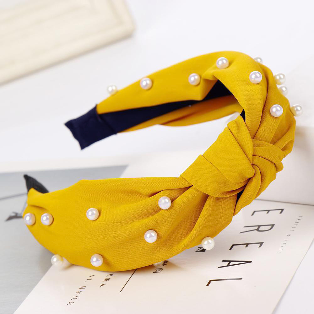 Korean version wide edge simple hairpin with solid color and beads
