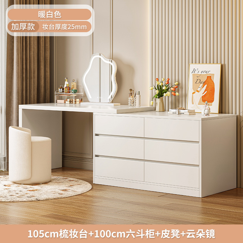 [cloud mirror + leather stool combination] 105cm table + 100cm chest of six drawers: thickened table multi-storage