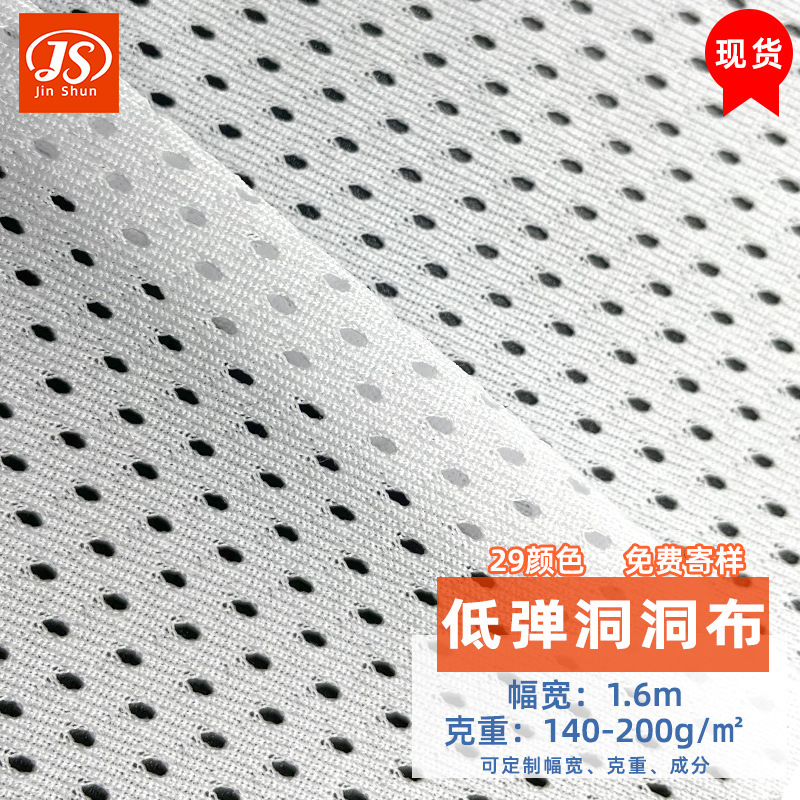 factory in stock color low elastic hole mesh fabric work wear sports fabric spandex elastic mesh polyester lining 中文版