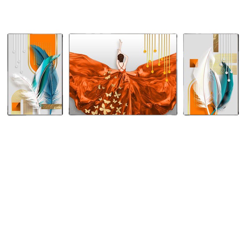 Room Decorative Painting Sofa Background Painting Hotel Hanging Picture Living Room Modern Minimalist Character Three-Piece Painting Crystal Porcelain Painting Wholesale 中文版