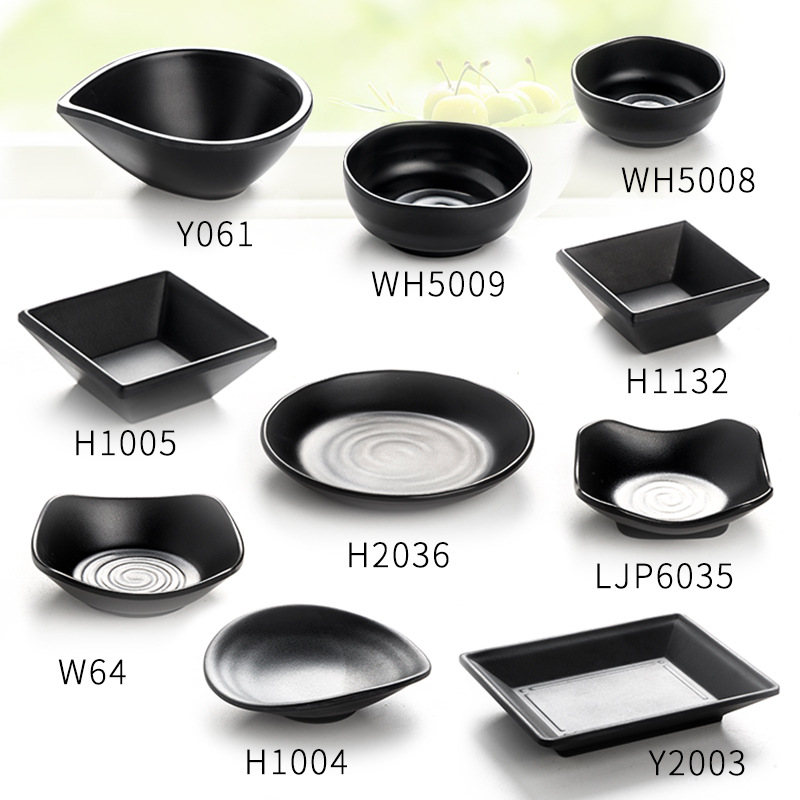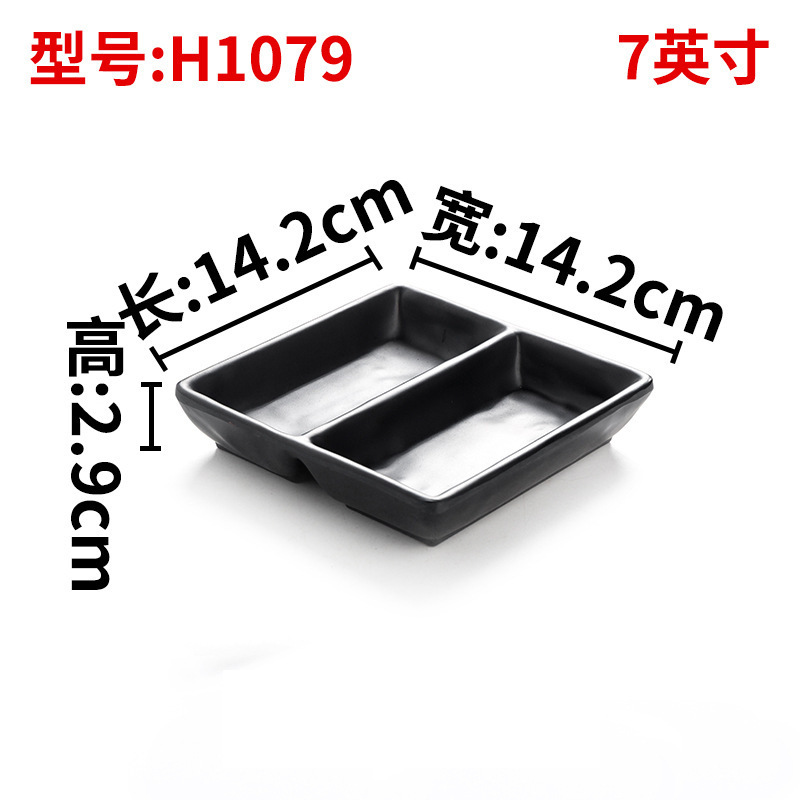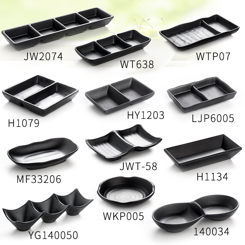 creative japanese style hot pot tableware seasoning dish two grid sauce dish imitation porcelain melamine black snack plate three grid sauce dipping bowl