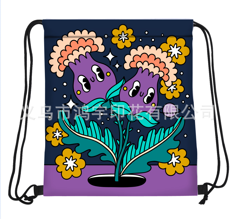 new waterproof drawstring backpack cartoon plant flower oxford cloth foldable drawstring storage backpack 中文版