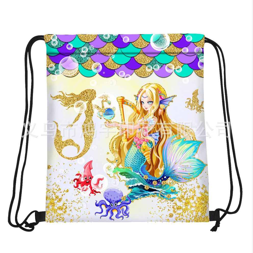 waterproof new drawstring backpack cartoon mermaid oxford cloth foldable drawstring storage backpack wholesale 中文版