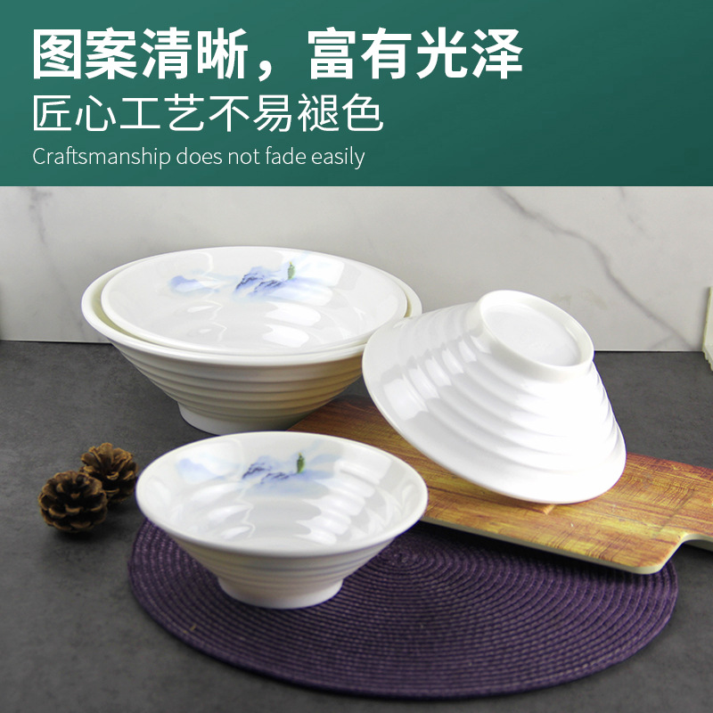 Hipp White Imitation Porcelain Melamine Noodle Bowl Melamine Canteen Restaurant Noodles Shop Commercial Tableware Noodle Bowl round Bowl 中文版