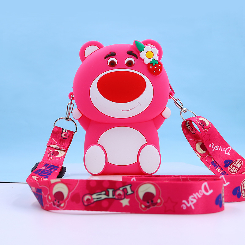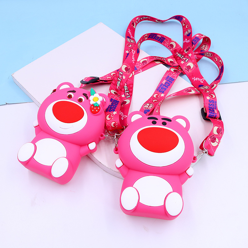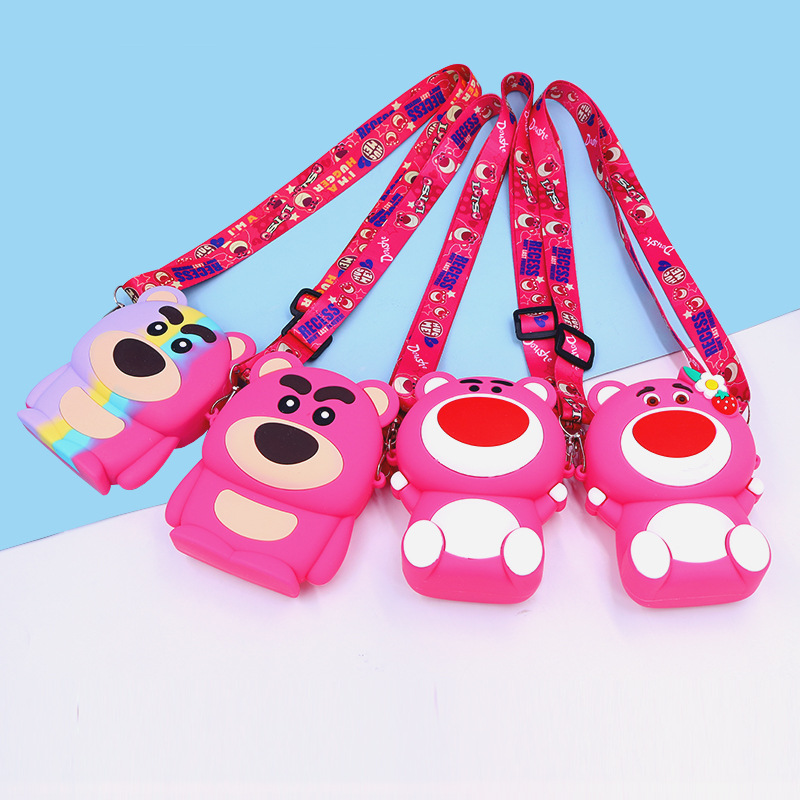 Strawberry Bear Bag, Cartoon Silicone Bag, Children's Single Shoulder Bag