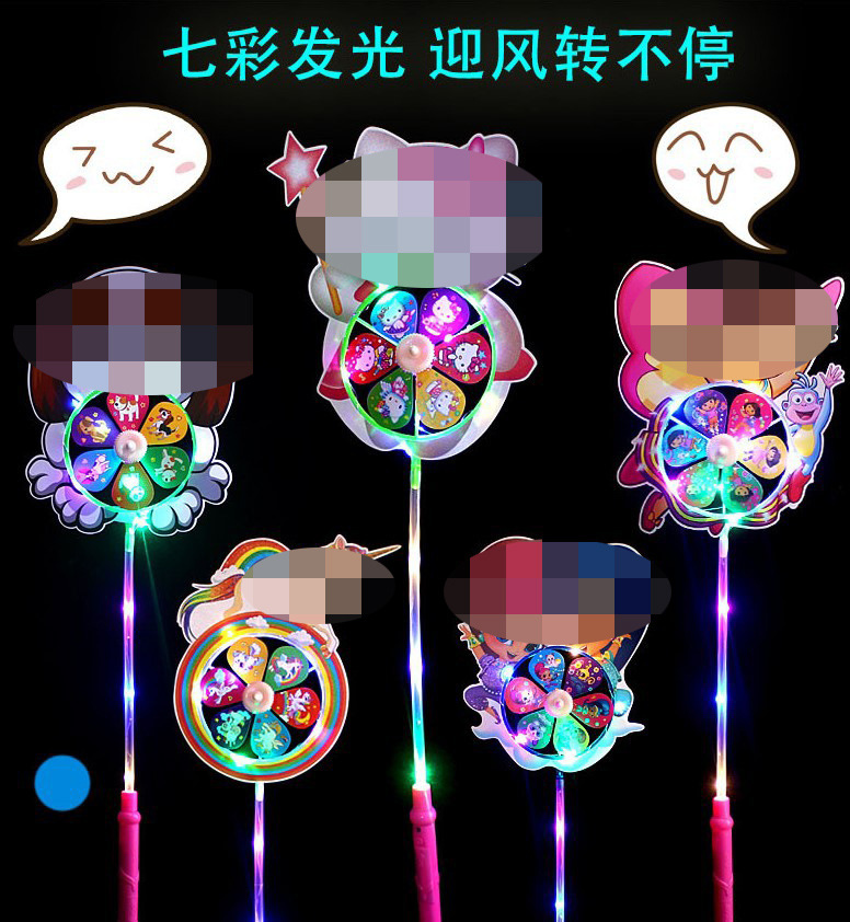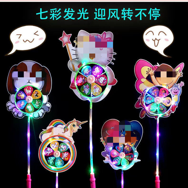 Internet Celebrity Light-Emitting Windmill with Light Cartoon Windmill Stall Square Toy Children Colorful Windmill Luminous Wholesale