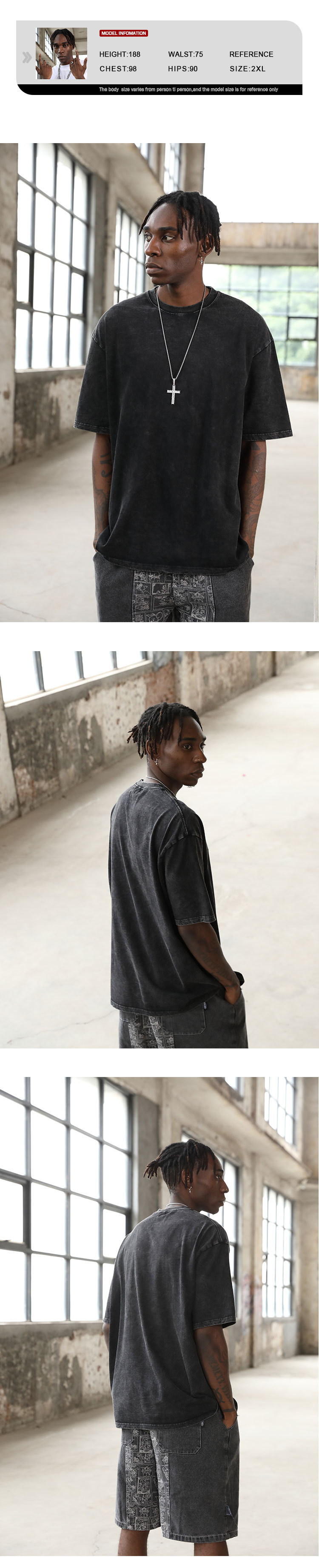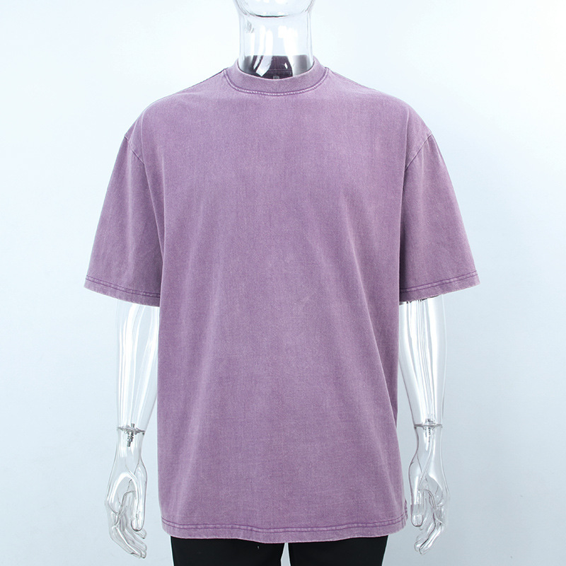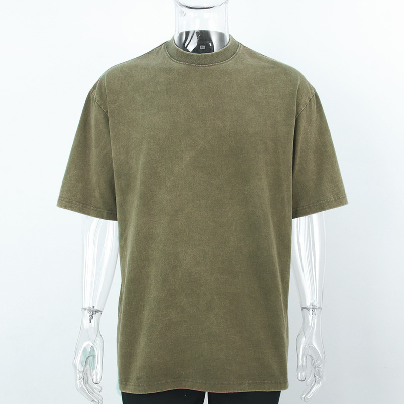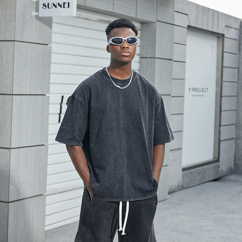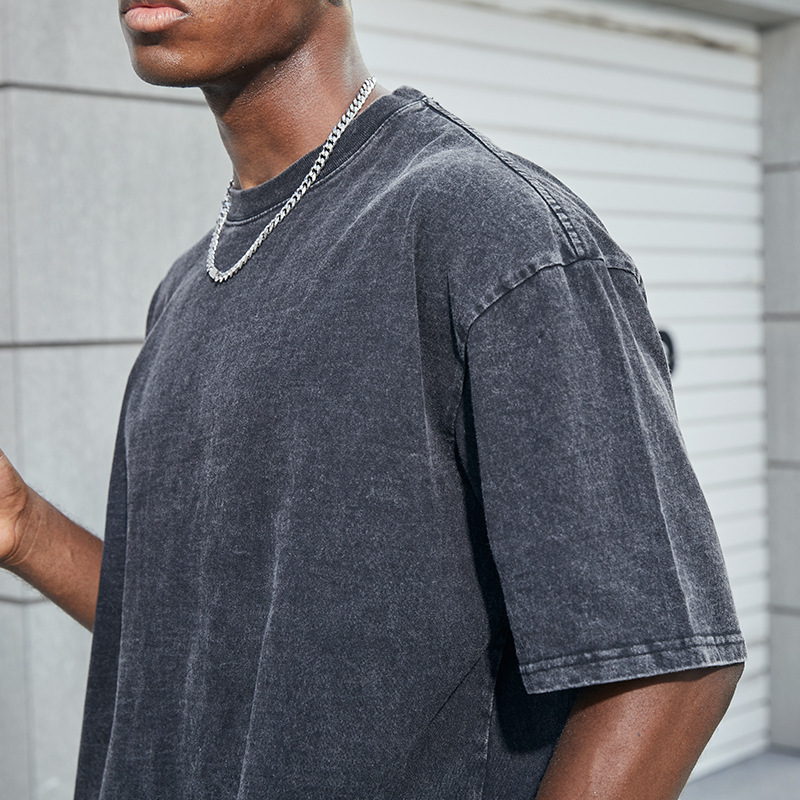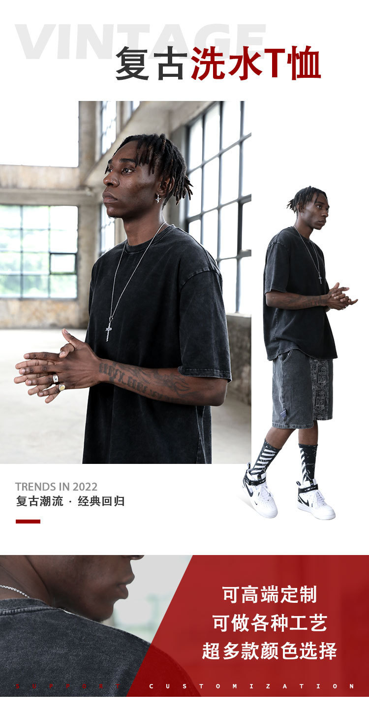 Medium and High-End T-shirt Customized Washed Dark Printed Short-Sleeved Men's Retro Half Sleeve Distressed T-shirt Source Clothing Factory