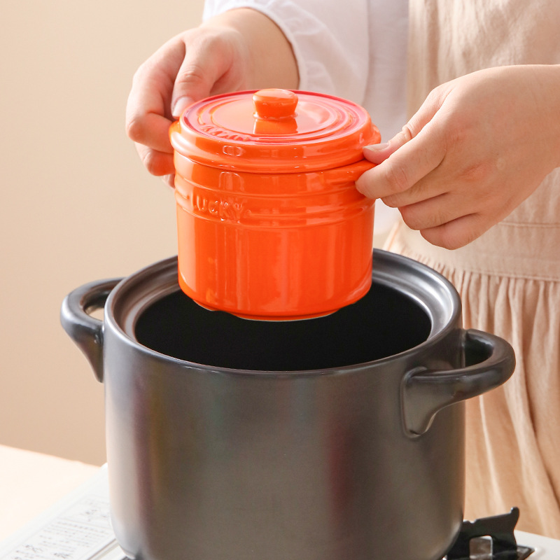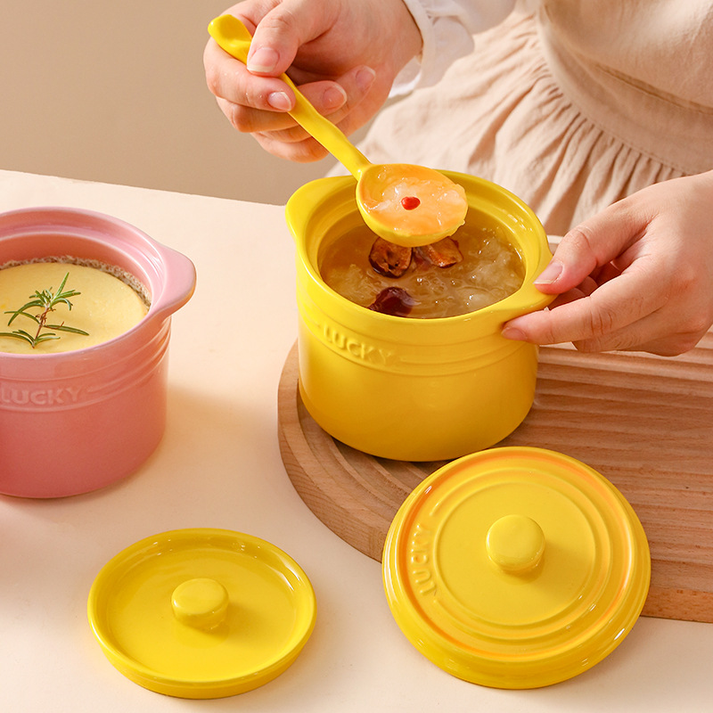 colorful nordic ceramic stew pot household stew soup with double lid water insulation pot steamed egg bowl simmering stock stew