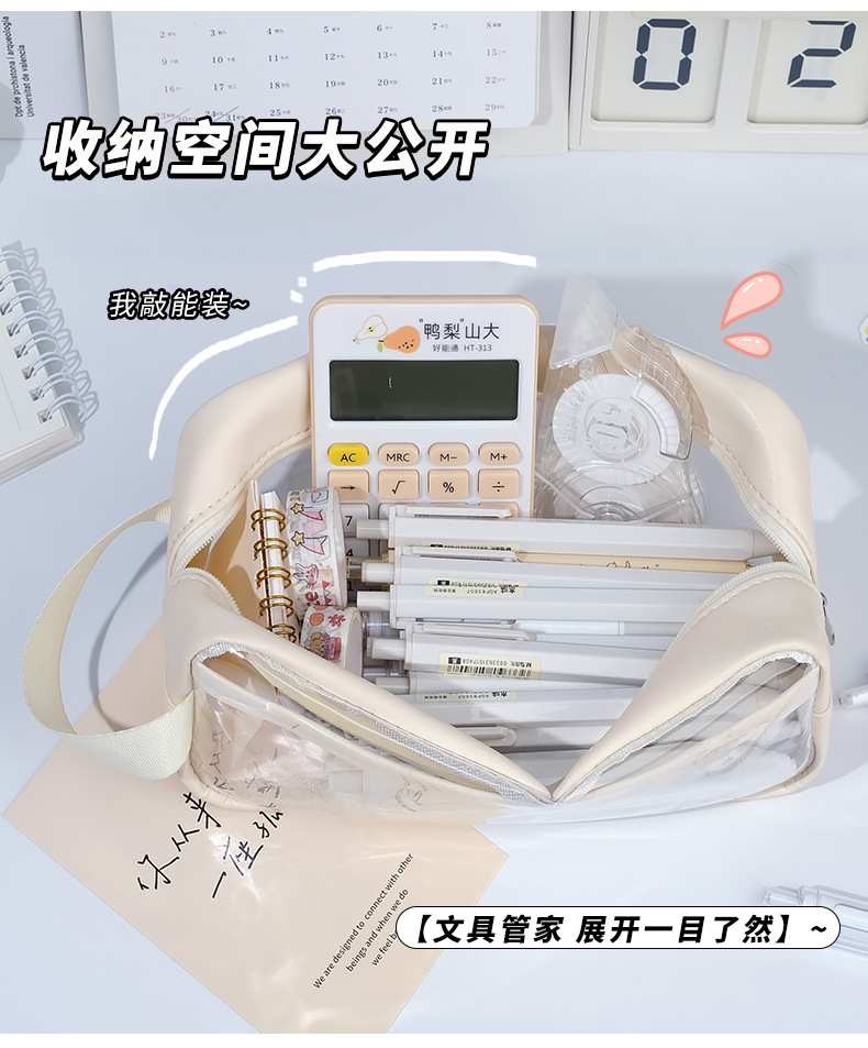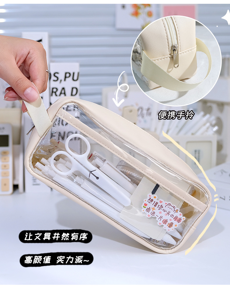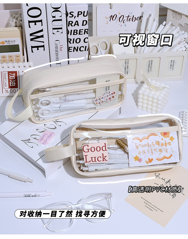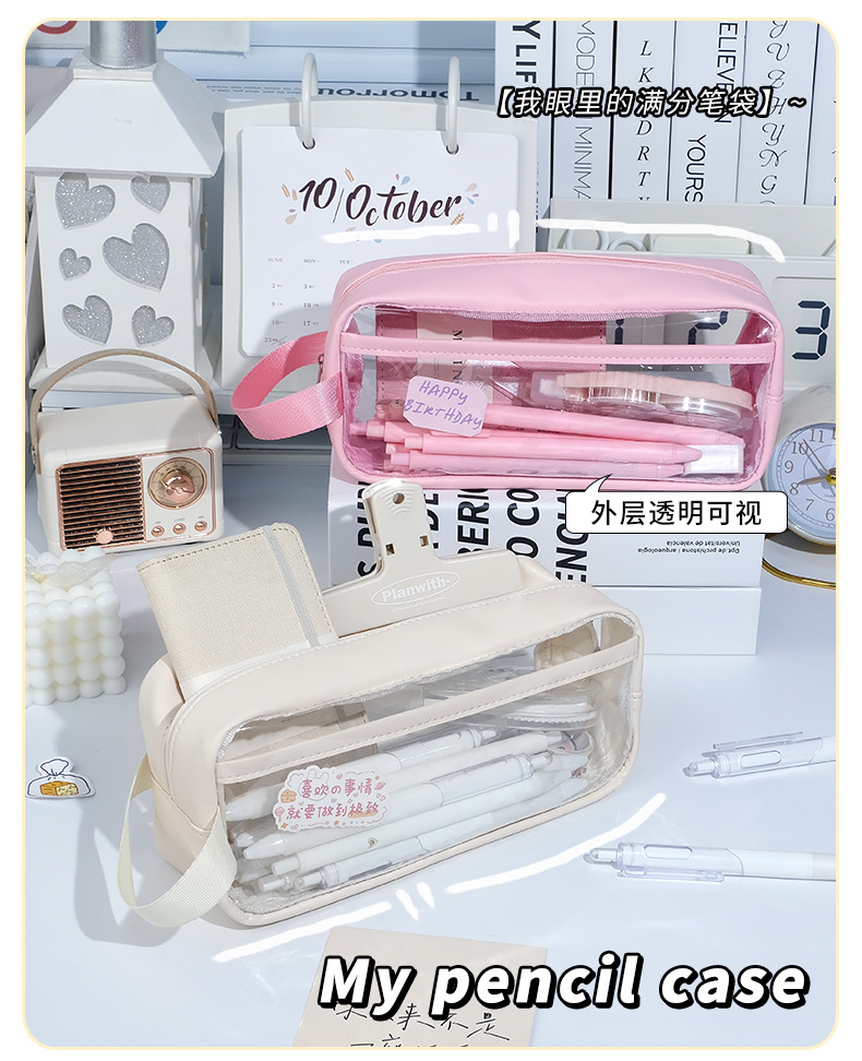 Transparent Pencil Case Large Capacity Pencil Case Stationery Case Pencil Bag Stationery Case Solid Color Storage Bag 中文版