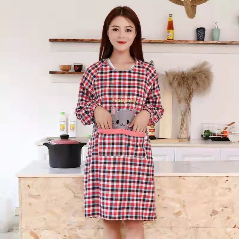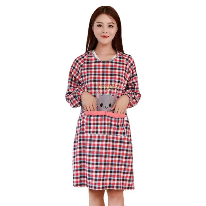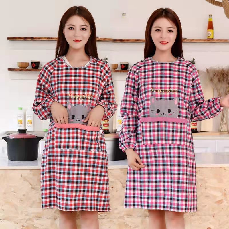Old Coarse Cloth Long Sleeve Apron Women's Home Kitchen Sleeved Apron Cute Overclothes Oil-Proof Bib Work Clothes