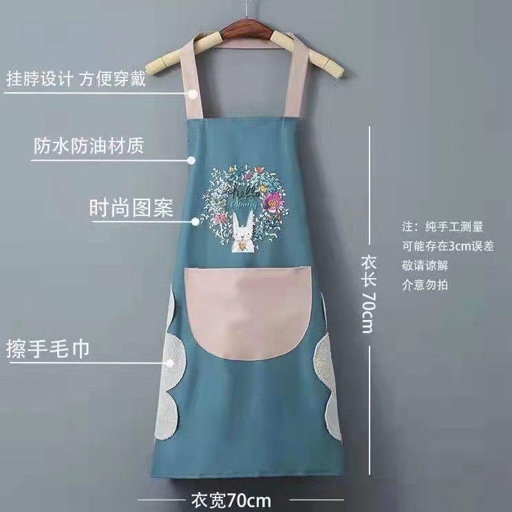 Apron Kitchen Household Waterproof Oil-Proof Cute Internet Celebrity Cooking Women's Summer Work Clothes Men's Apron 2023 New