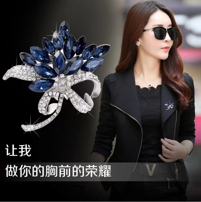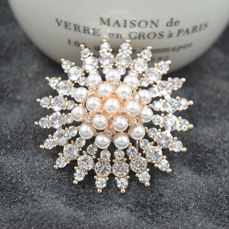 diamond high-end brooch women's scarf buckle alloy brooch corsage fashionable temperamental all-match pearl crystal brooch wholesale 中文版