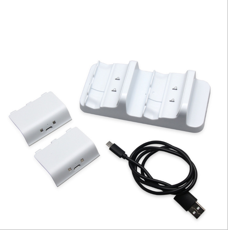 TYX-532 XBOX ONE手柄双充 is a charging product designed to meet the charging needs of the XBOX ONE controller. This product is equipped with two battery packs that can be installed separately to power the XBOX ONE controller. It also comes with a USB charging cable, which can be connected to the battery pack's MICRO interface through a standard DC5V USB output device or fire bull interface to charge the battery pack. When the battery is already installed in the XBOX ONE controller, it can be charged directly by the dual-charging base of this product.