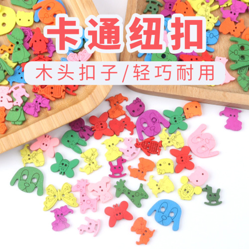 cartoon colorful wooden children's handmade diy wooden buttons kindergarten sweater button baby button art material 中文版