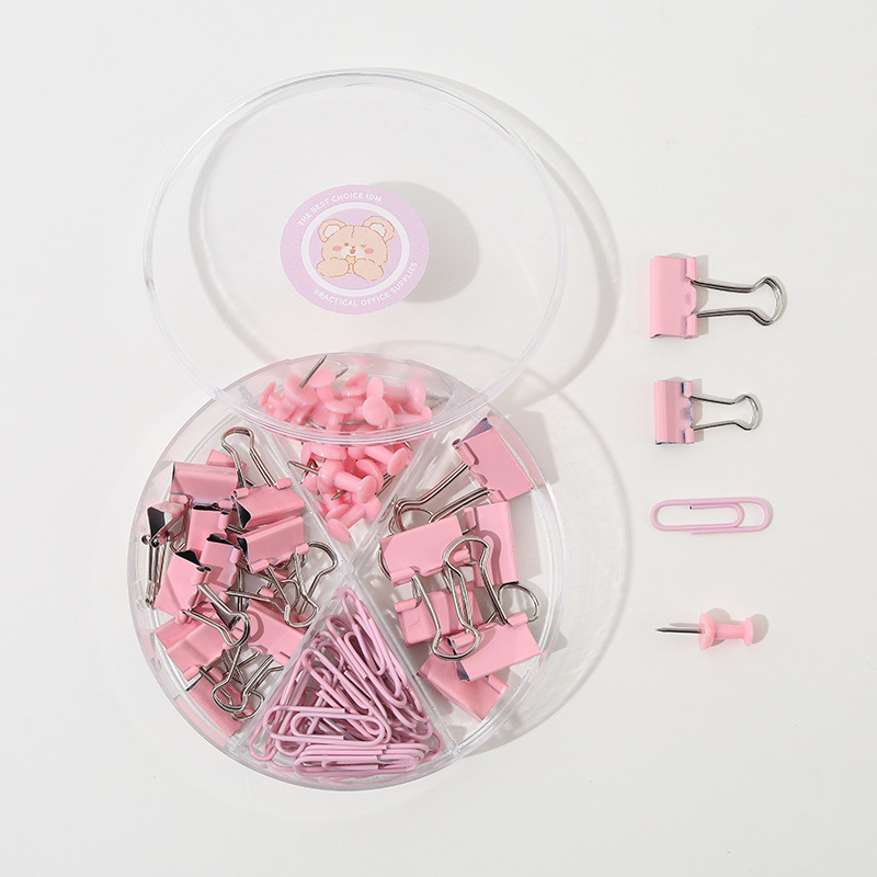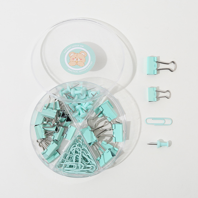 Macaron Color Four-Grid Stationery Suit Multi-Functional Large Small Size Long Tail Clip Combination Binder Clip Clip Pushpin 中文版