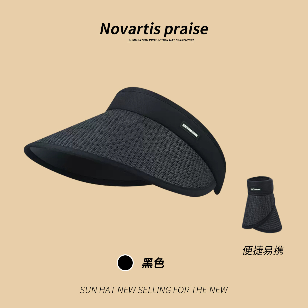 D-209CHT Black Folding Straw Hat