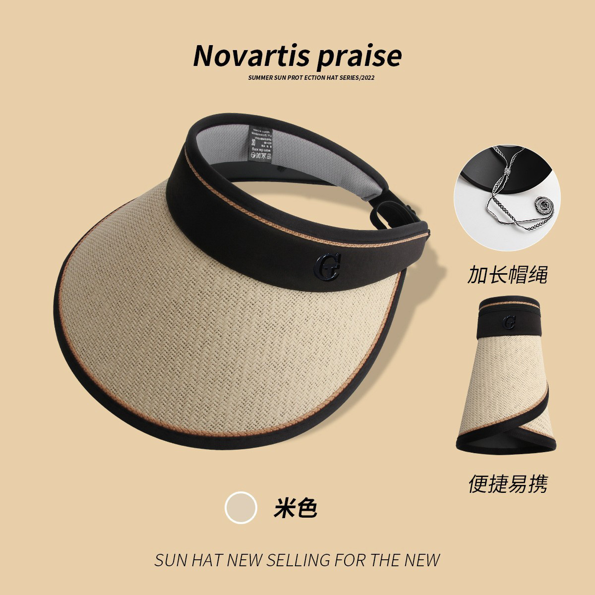 D-209CHT Beige Folding Straw Hat