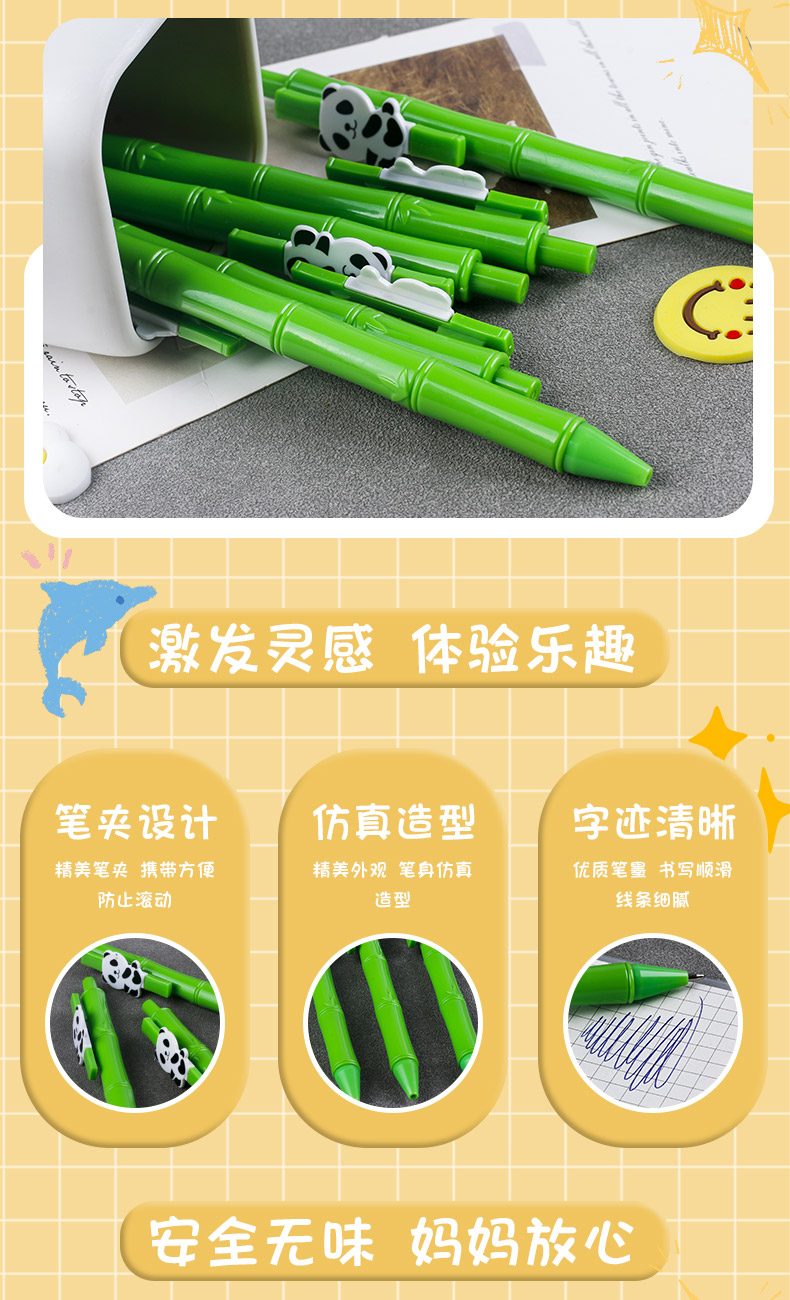 exquisite bamboo panda simulation gel pen creative children's stationery smooth push pen water pen stationery ballpoint pen 中文版