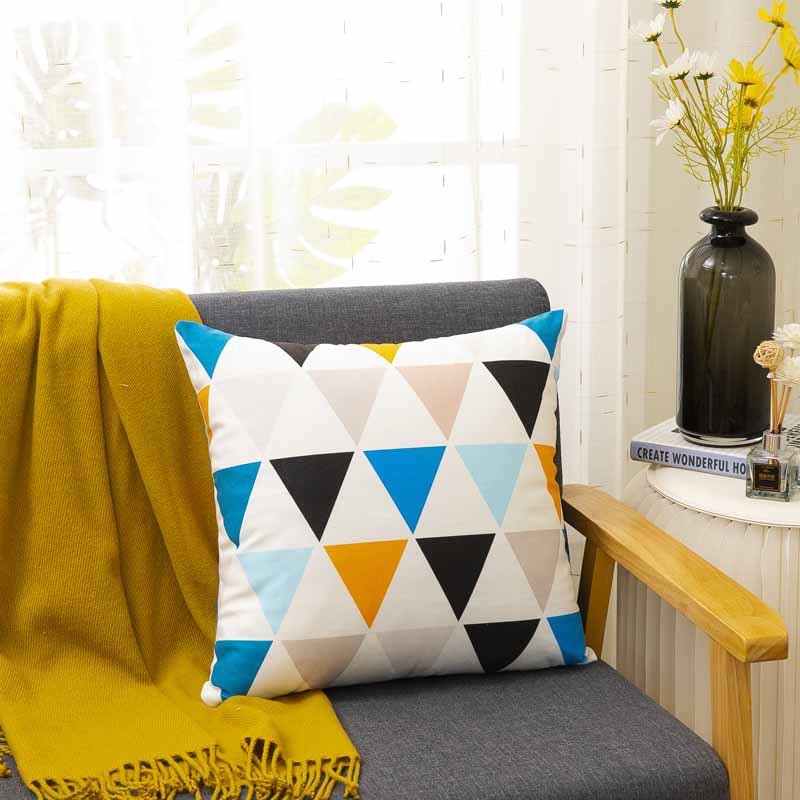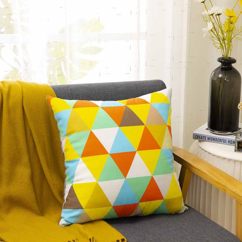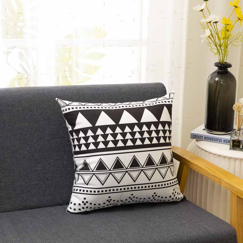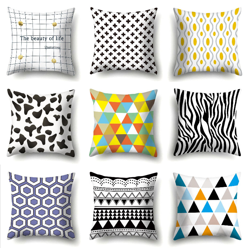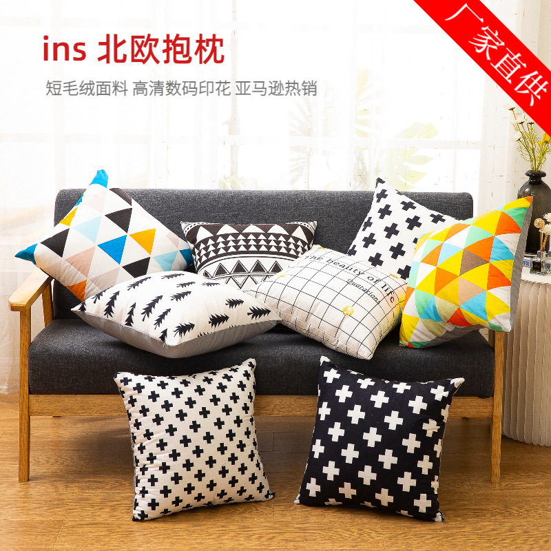 Cross-Border Amazon Pillow Cover Manufacturers Supply Digital Printing Simple Geometric Plush Pillow Waist Cushion with Core