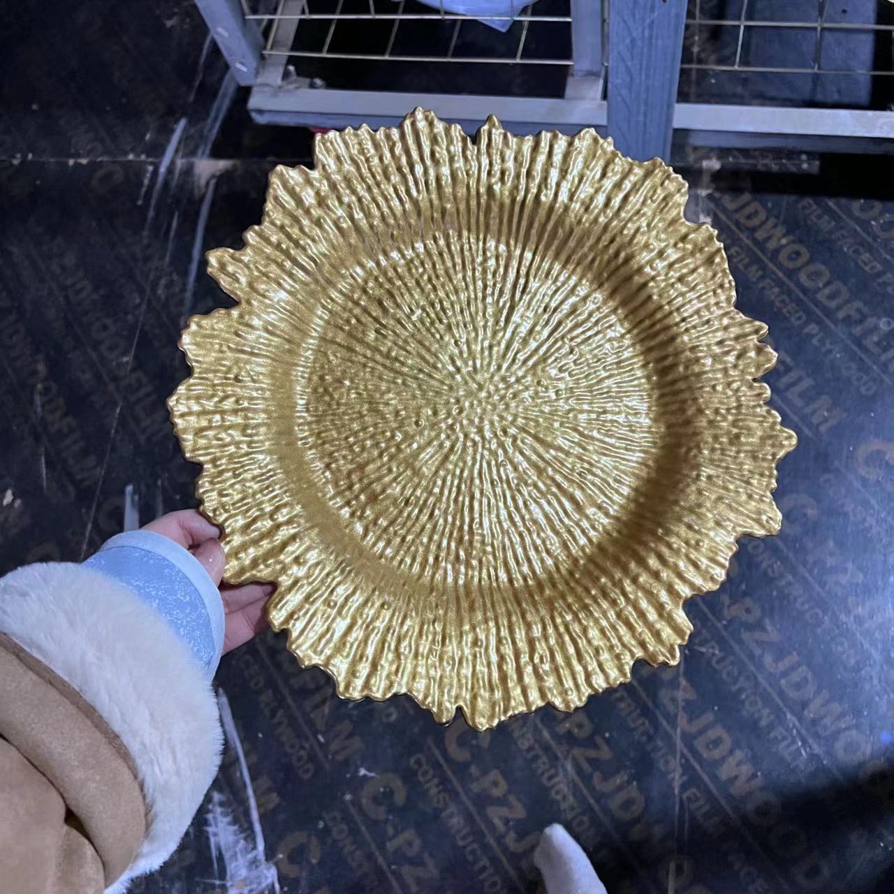 trendy irregular fruit plate banquet plate european-style household decorative tray pastry small snack dish electroplated gold 中文版