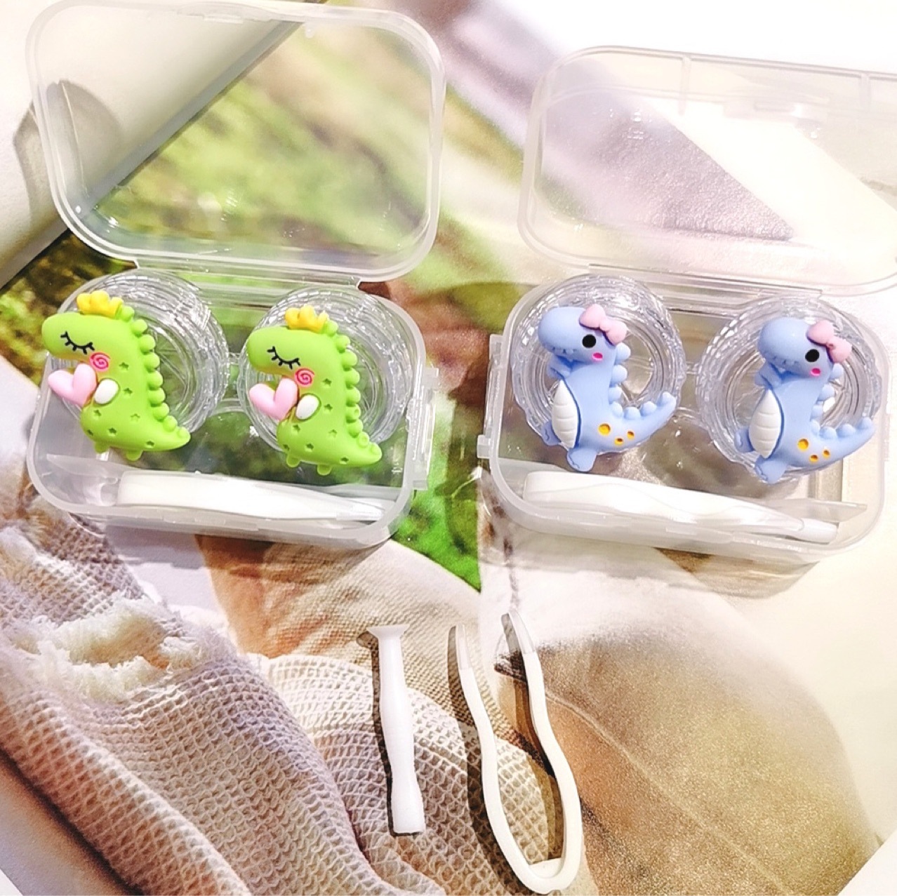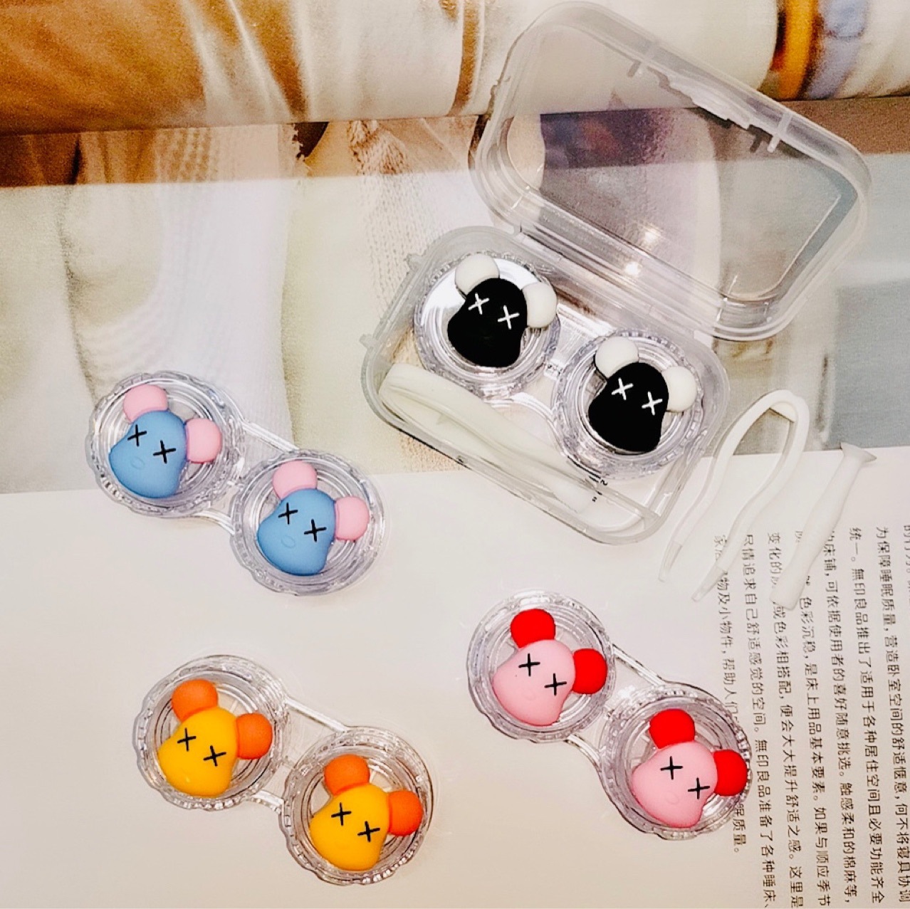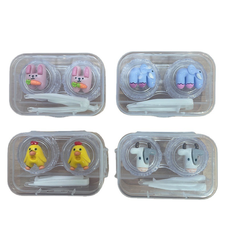 new cartoon one-pair package contact lens case portable mini cute girl heart personality partner double cosmetic contact lenses box
