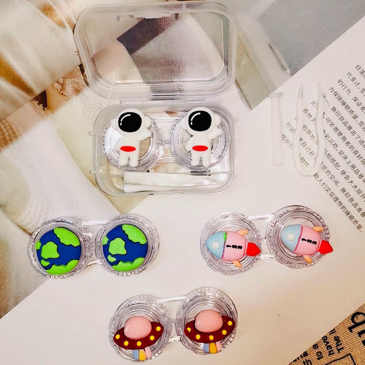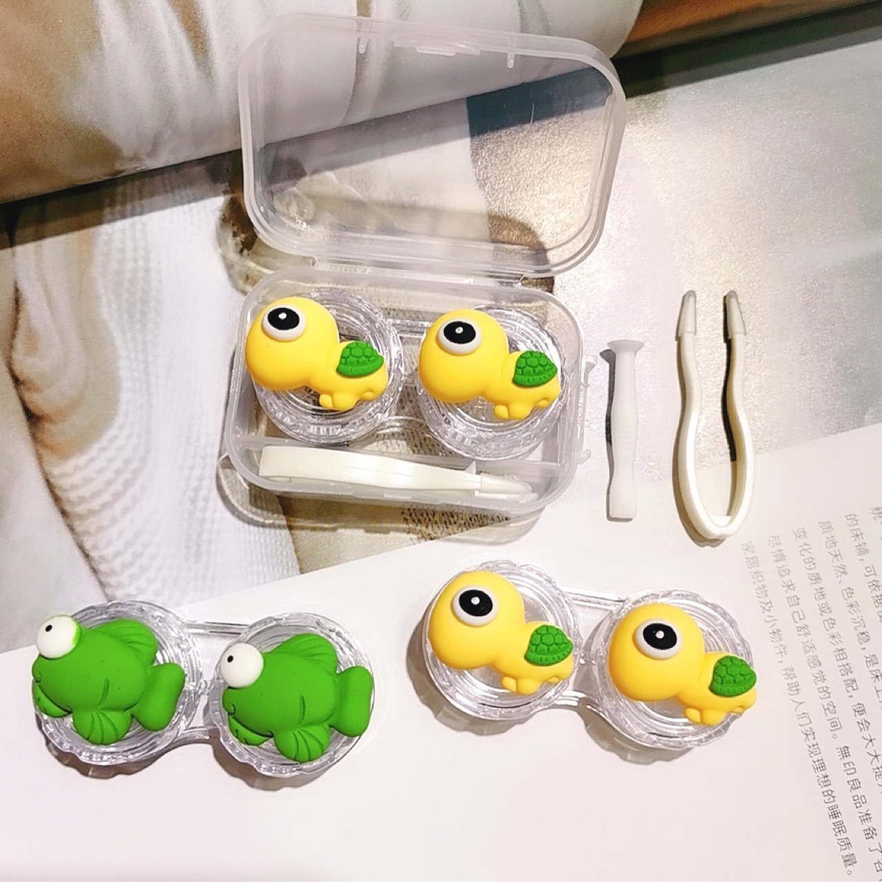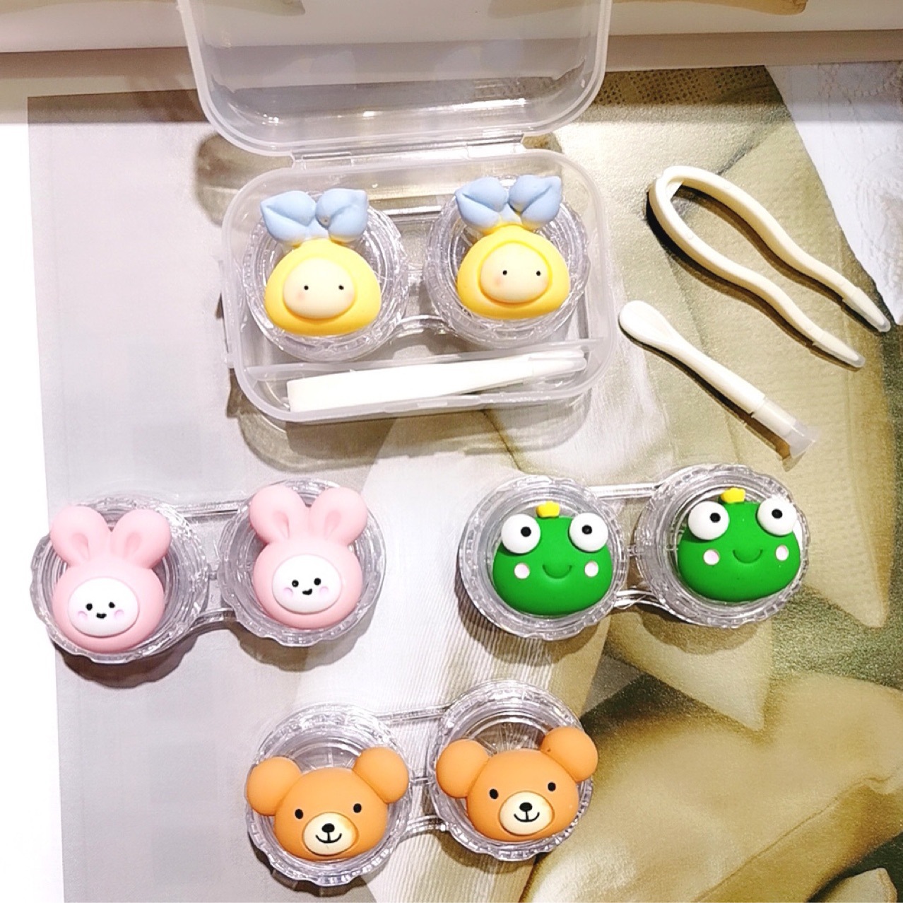 new cartoon one-pair package contact lens case portable mini cute girl heart personality partner double cosmetic contact lenses box