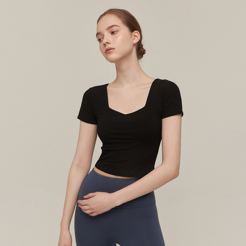 Customized Hot Thread Thin Exercise Yoga Short Sleeve Pilates Training Professional Morning Running Sports Top for Women