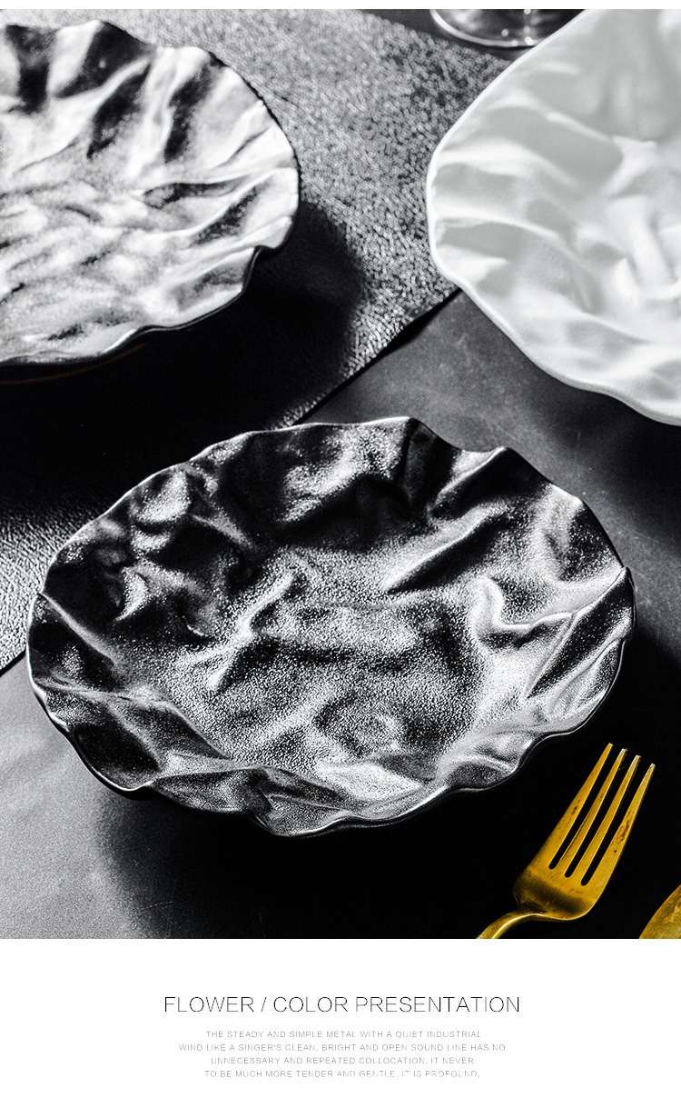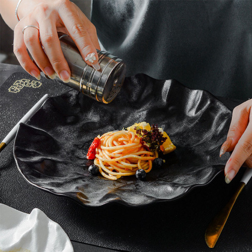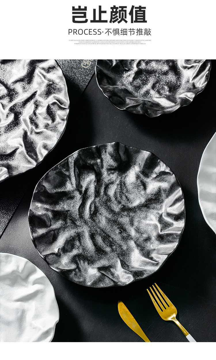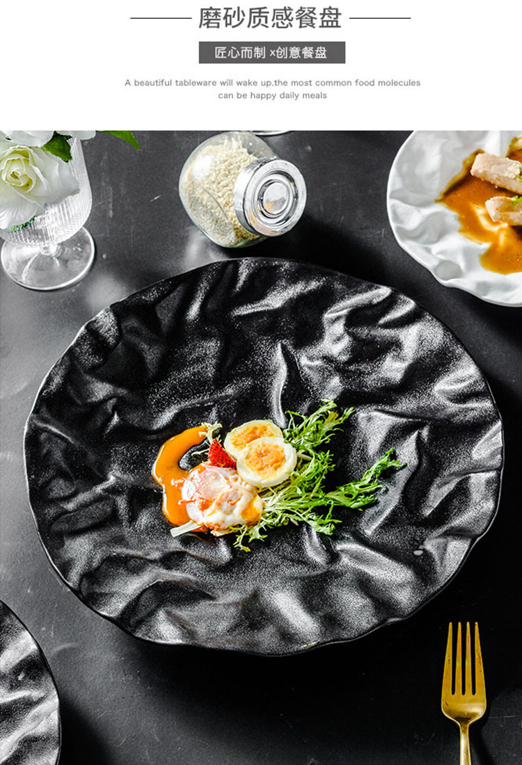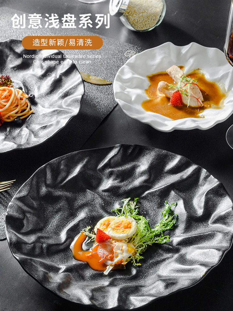 japanese rock western plate special steak plate commercial light luxury salad plate hotel creative ceramic dish plate 中文版