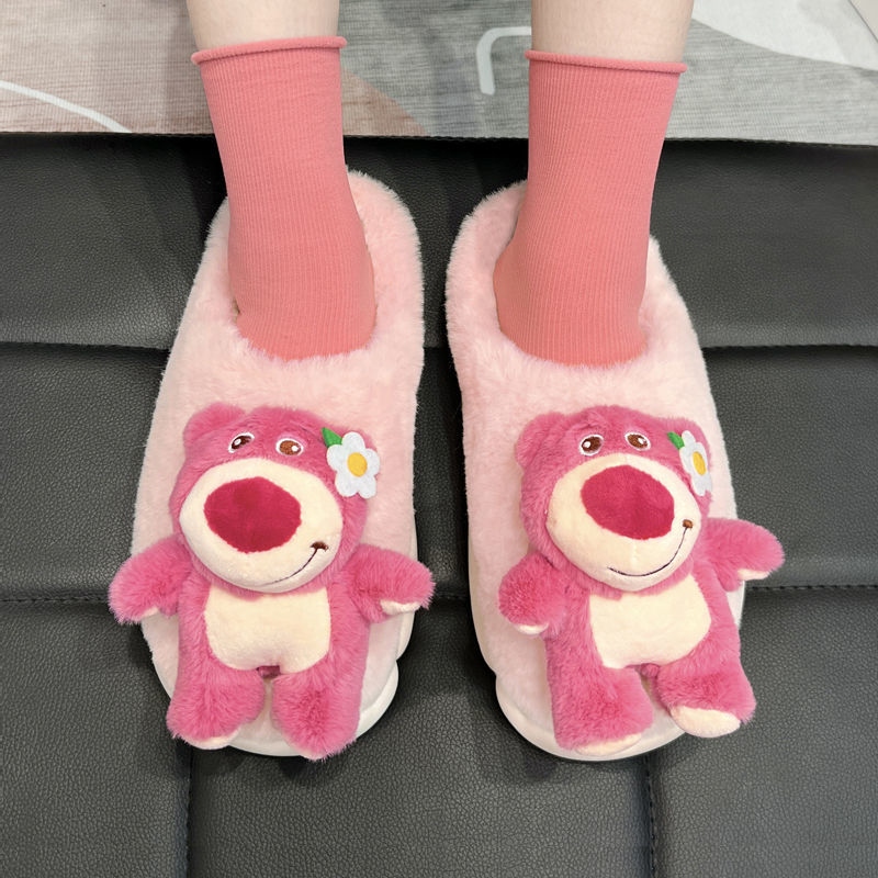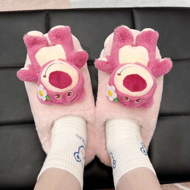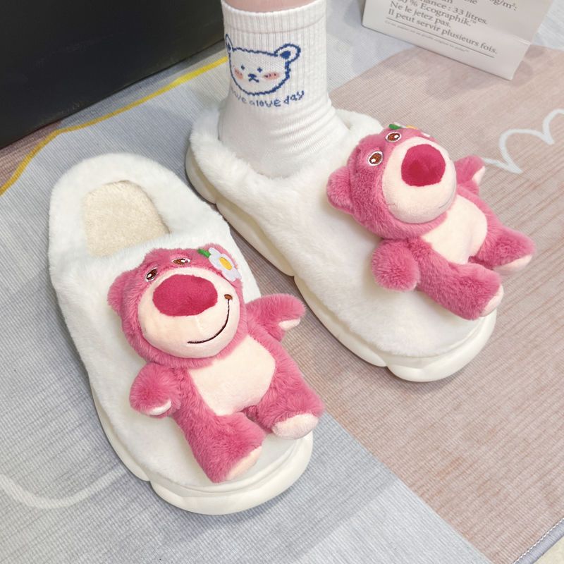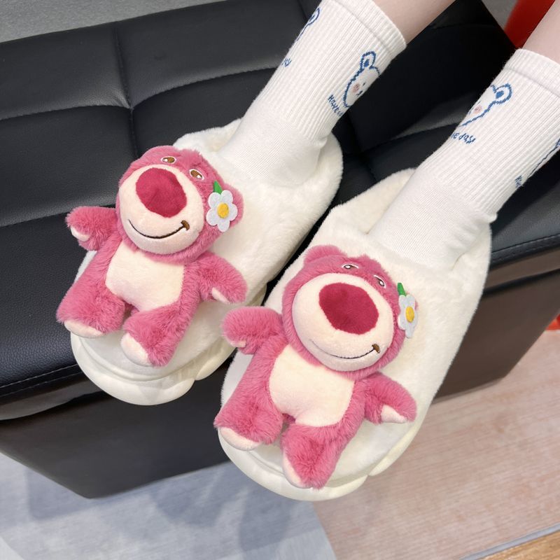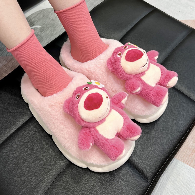 cute cartoon plush slippers interior home bear floor slippers warm non-slip net red girl 中文版