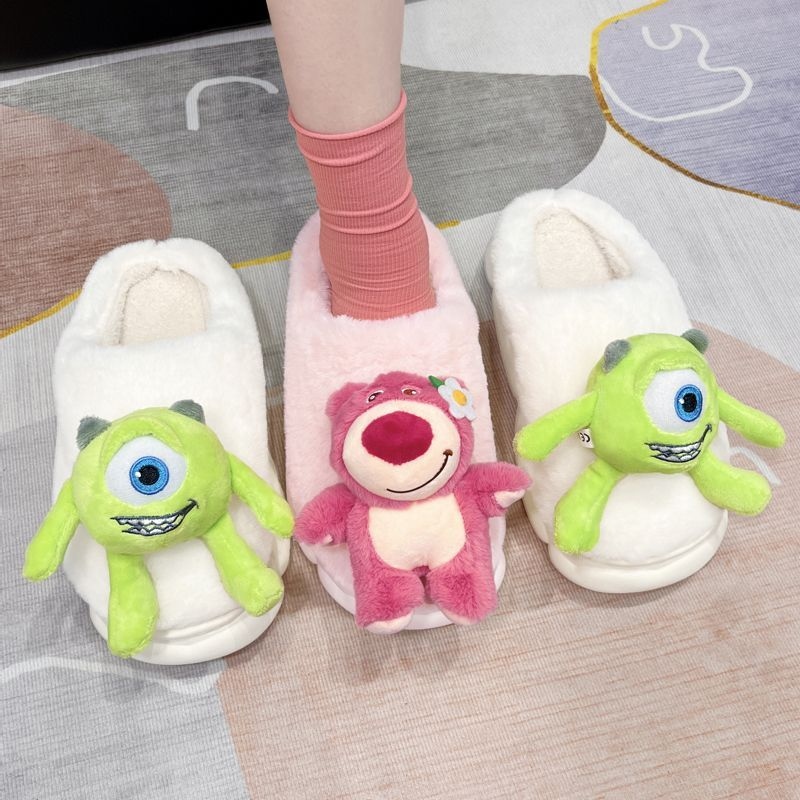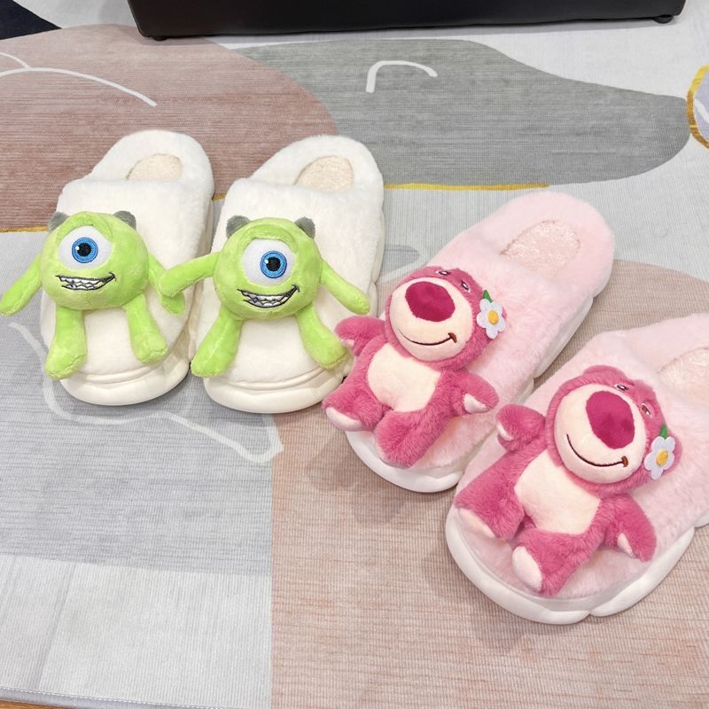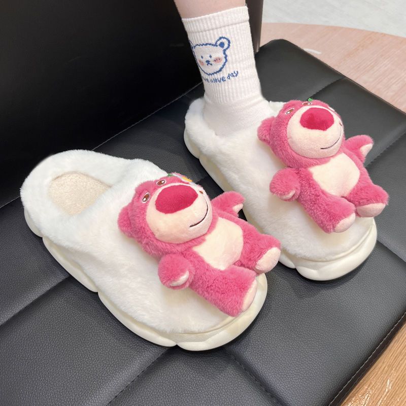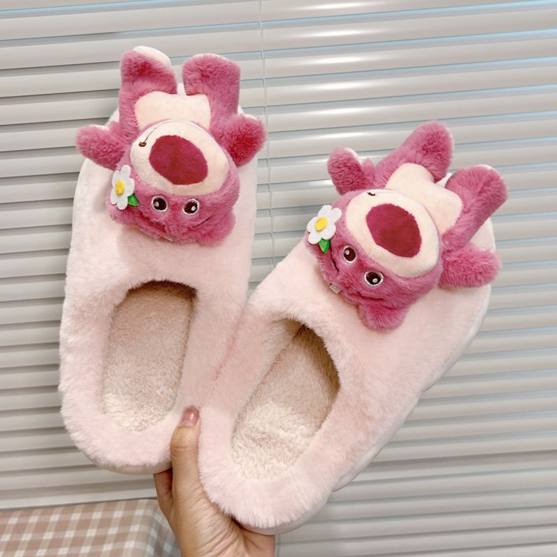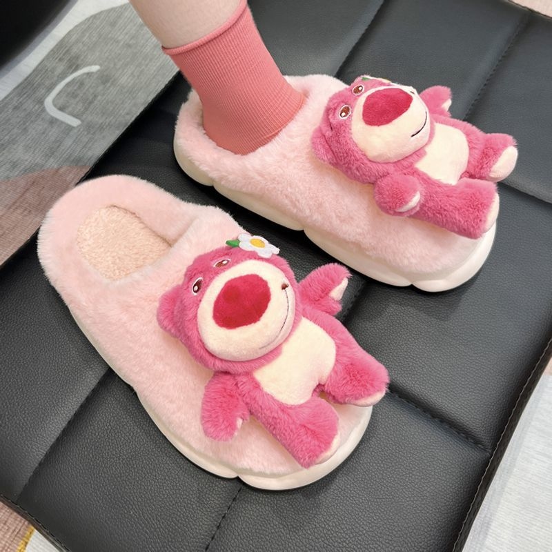 cute cartoon plush slippers interior home bear floor slippers warm non-slip net red girl 中文版