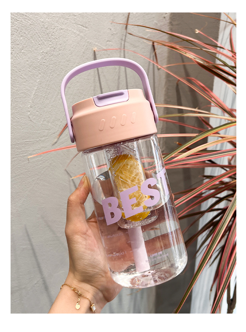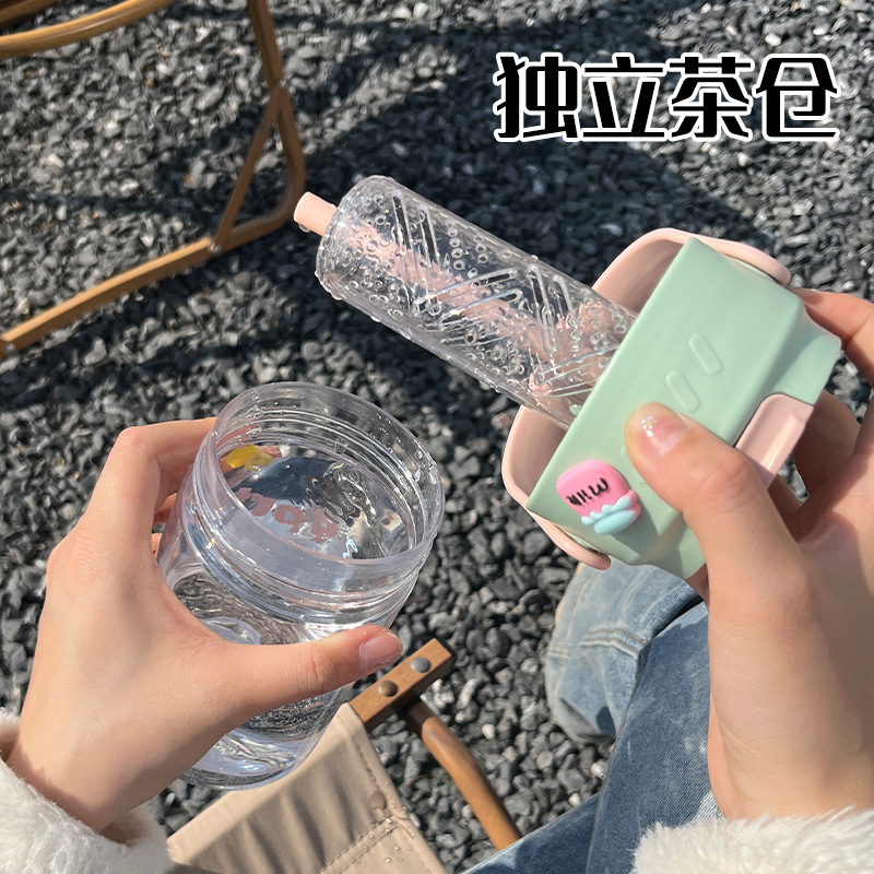 hz549 water cup for girls good-looking summer double drinking cup for men portable student children's straw cup anti-fall plastic