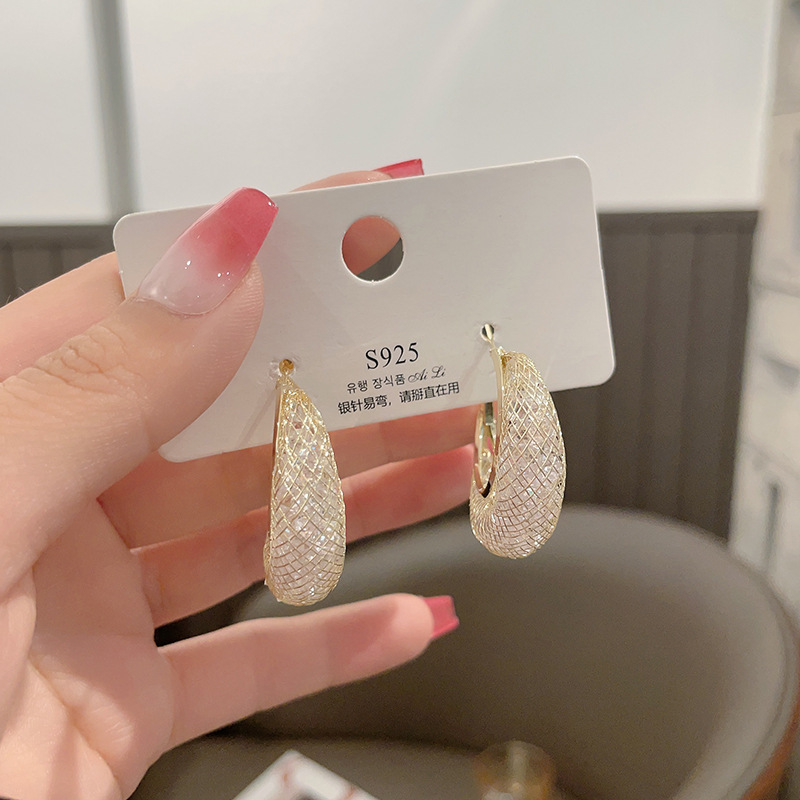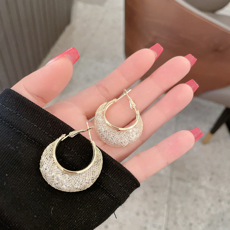 mesh crystal earrings female high sense internet celebrity same style circle earrings unique design temperament ear buckle light luxury new 中文版