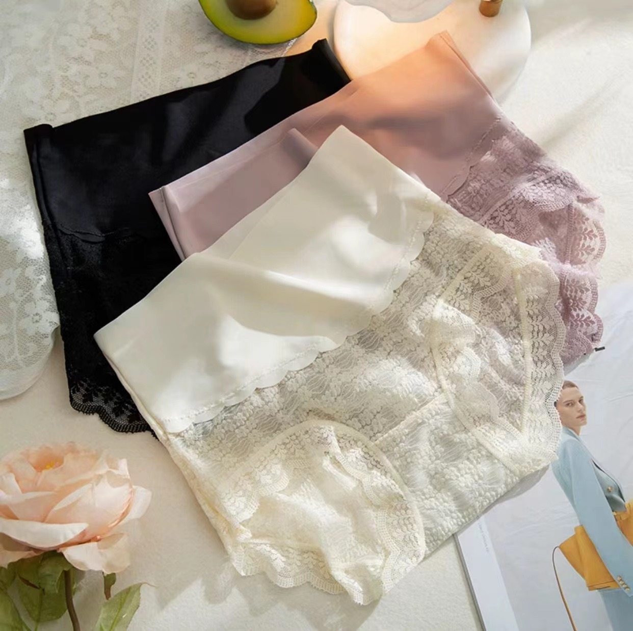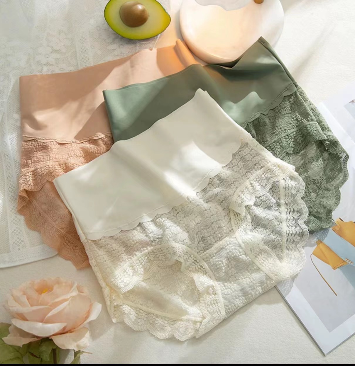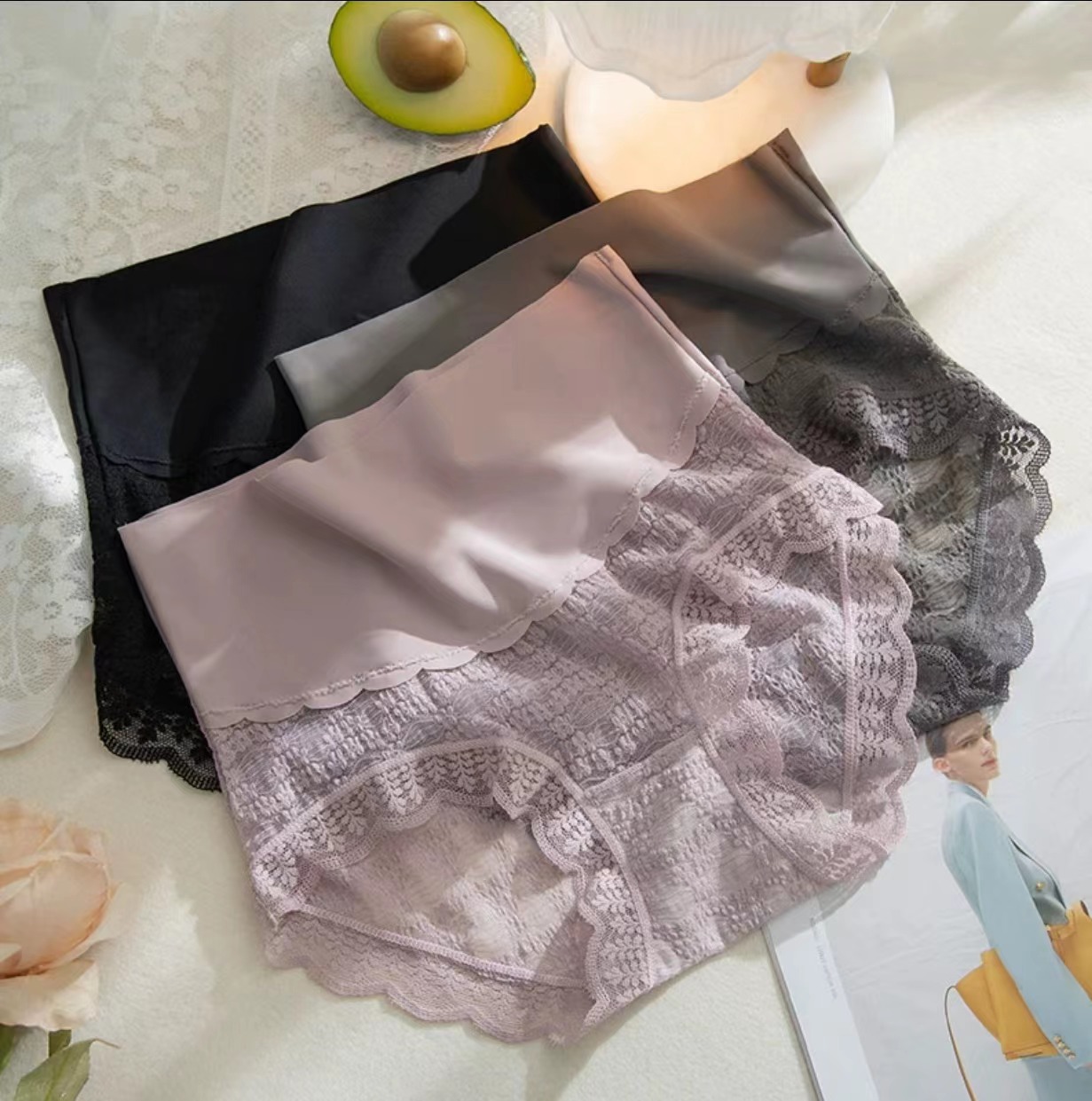 magical box mystery mid waist micro belly shaping lace girl stitching comfortable breathable briefs 中文版