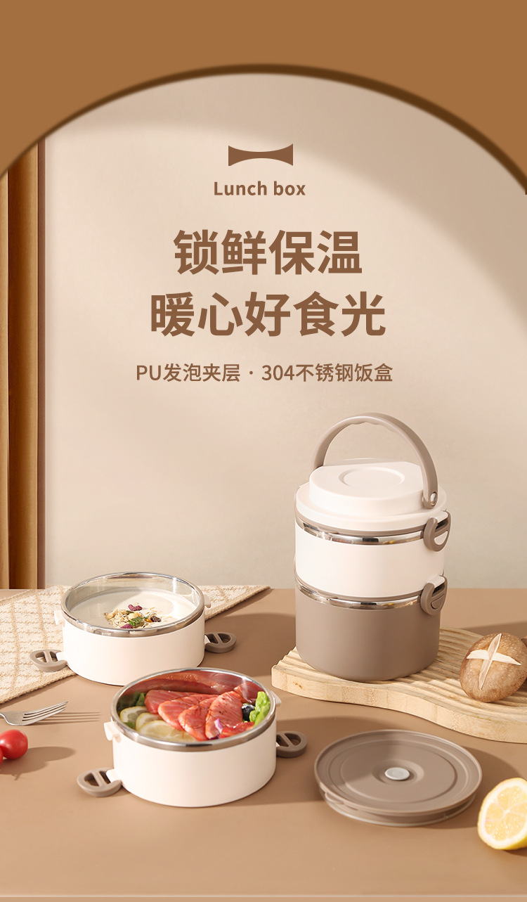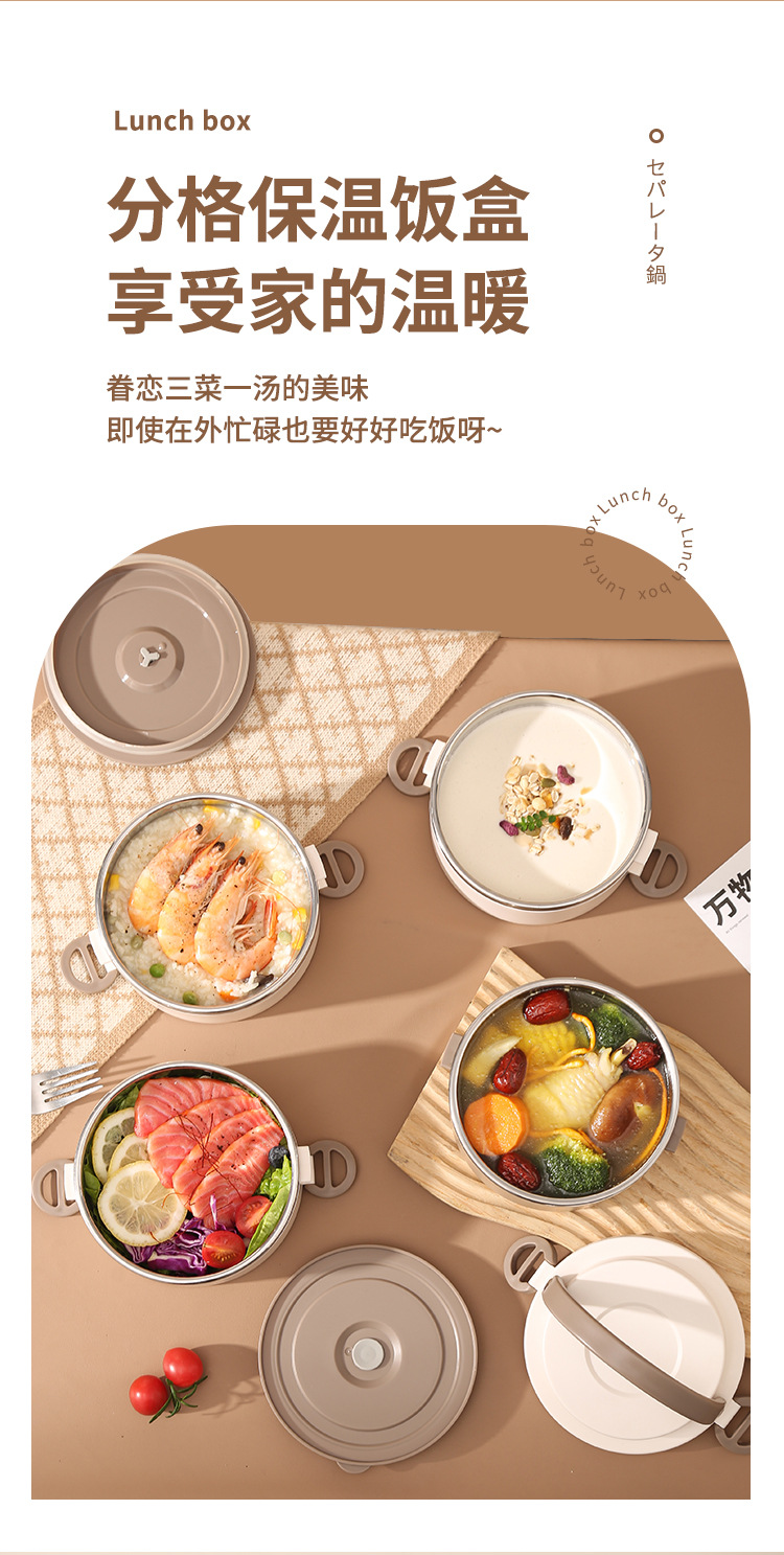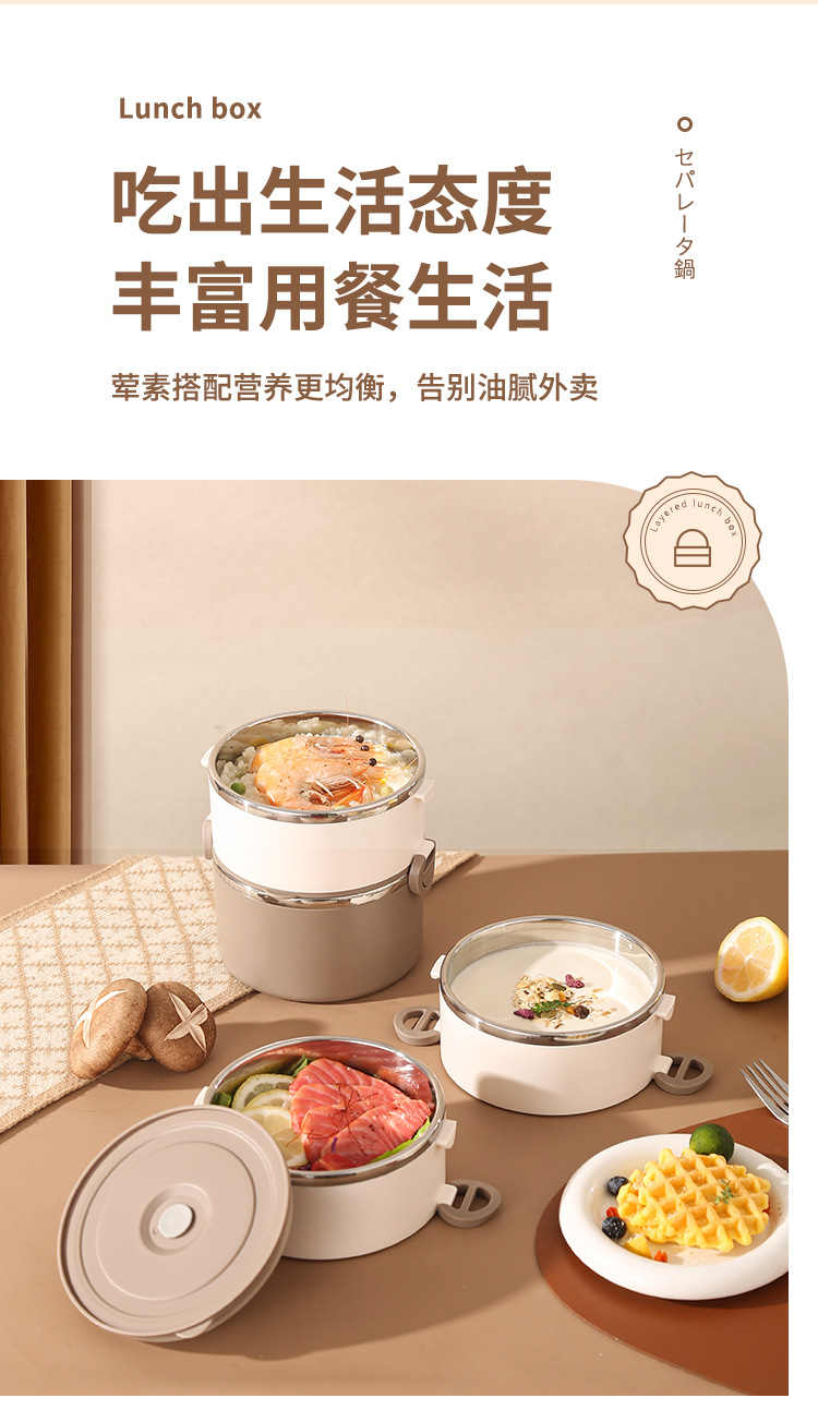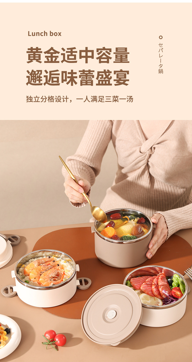 lunch box insulation foam portable partition 304 stainless steel lunch box office worker special multi-layer student round pot 中文版