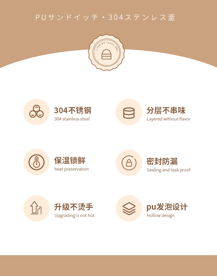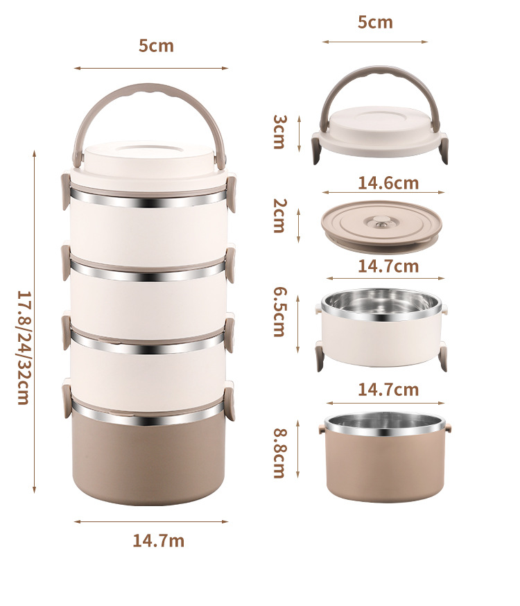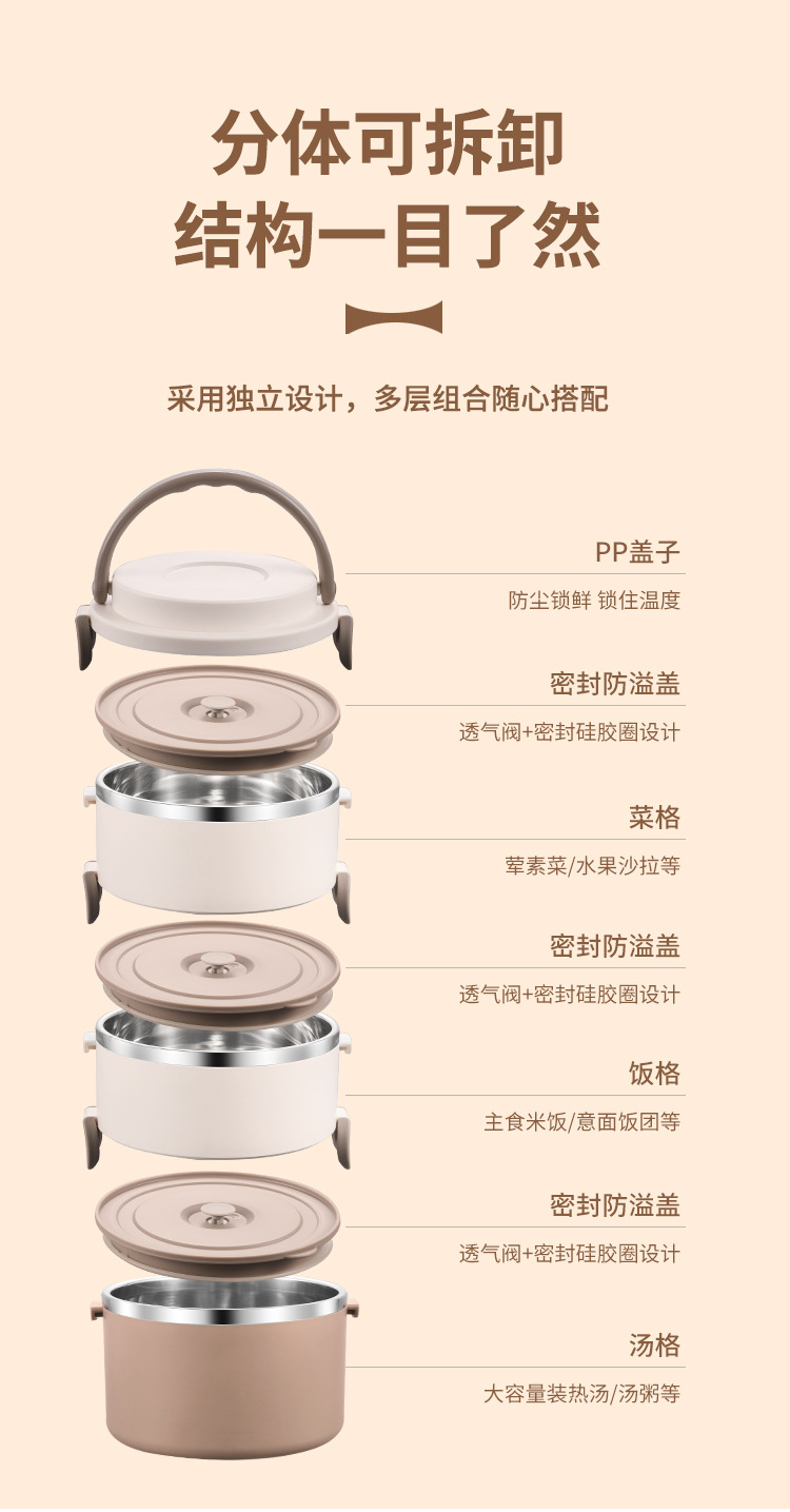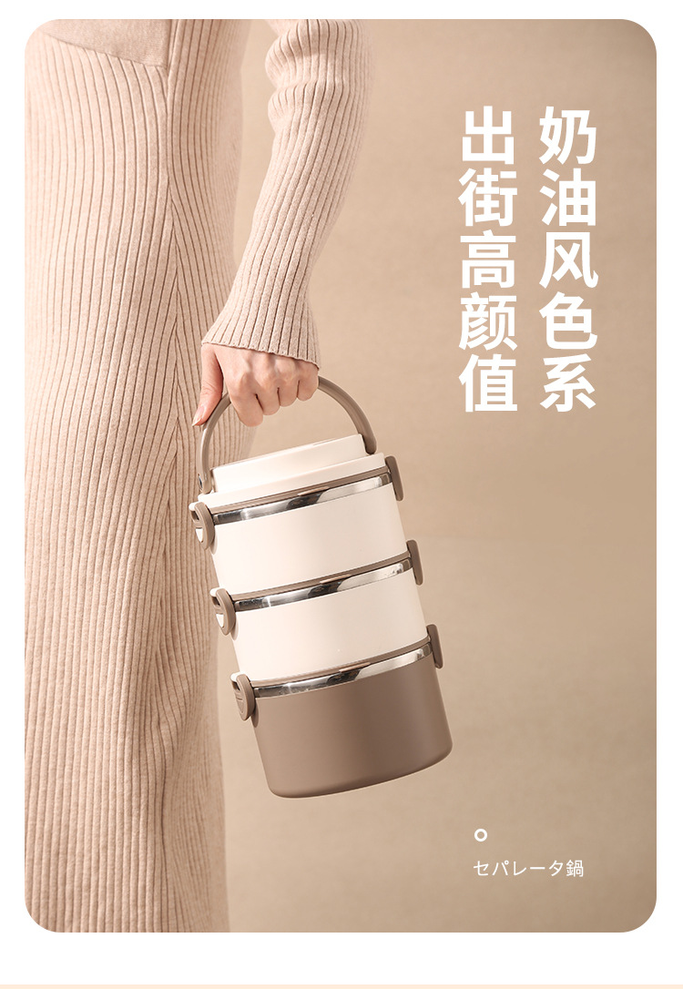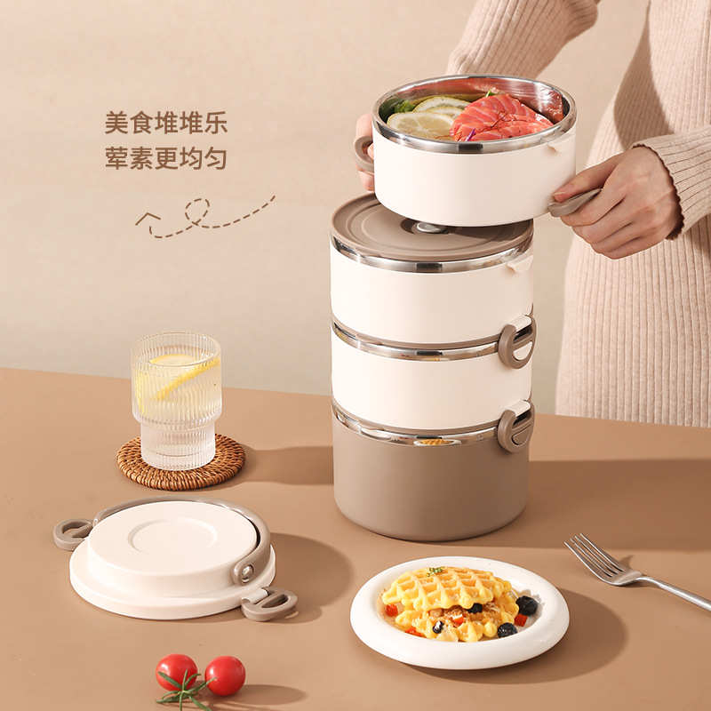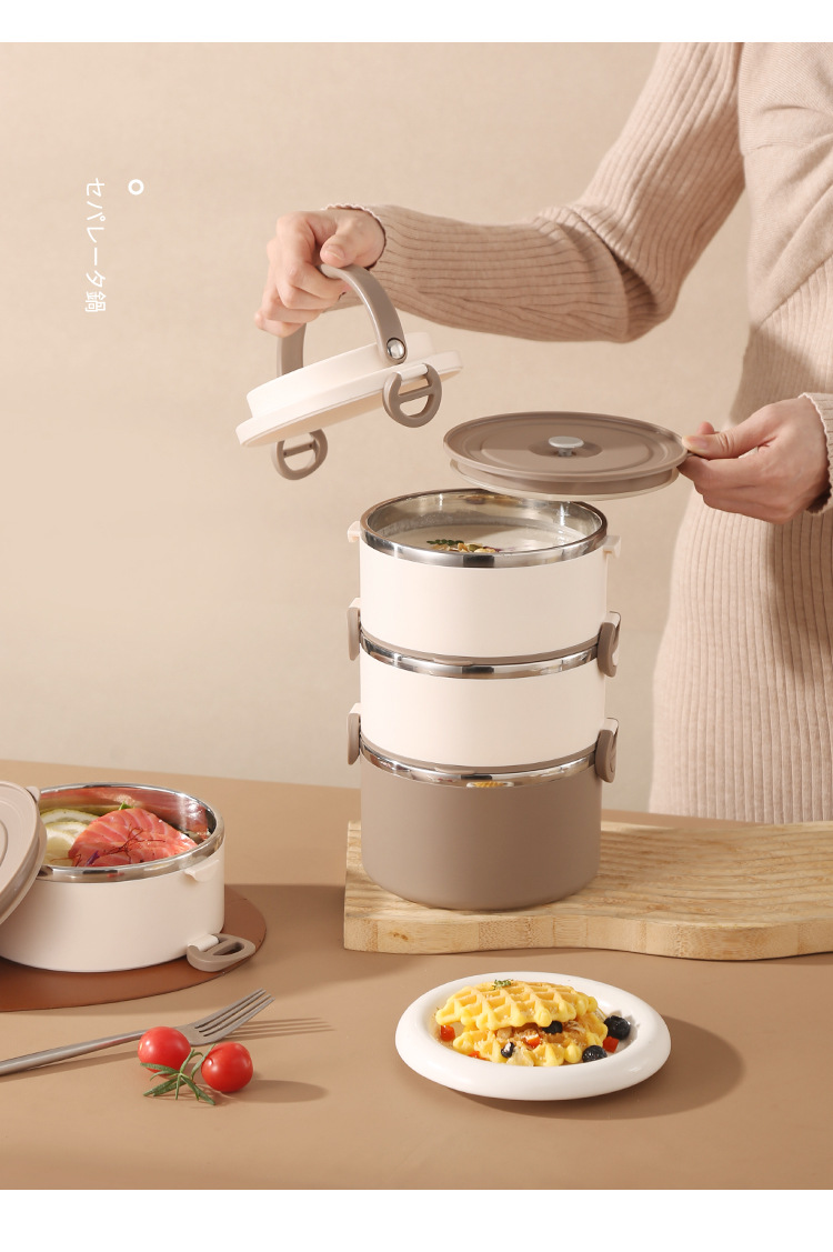 lunch box insulation foam portable partition 304 stainless steel lunch box office worker special multi-layer student round pot 中文版