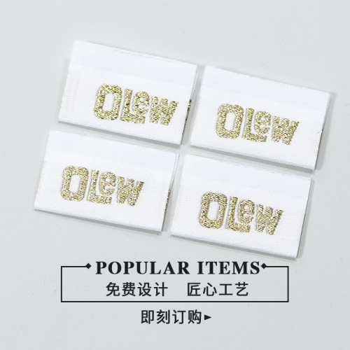 Apparel Woven Label Metal Yarn Spun Polyester Thread Woven Label Collar Lable Mark Cutting and Folding Label Free Design 中文版