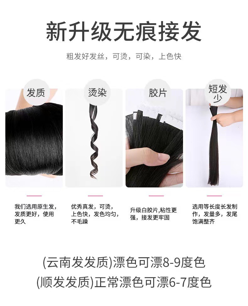 Hair Extension Piece Seamless Hair Extension Female Real Hair Extension Patch Hair Piece Invisible Hair Band 6d Hair Extension Can Perm Curly Hair 中文版