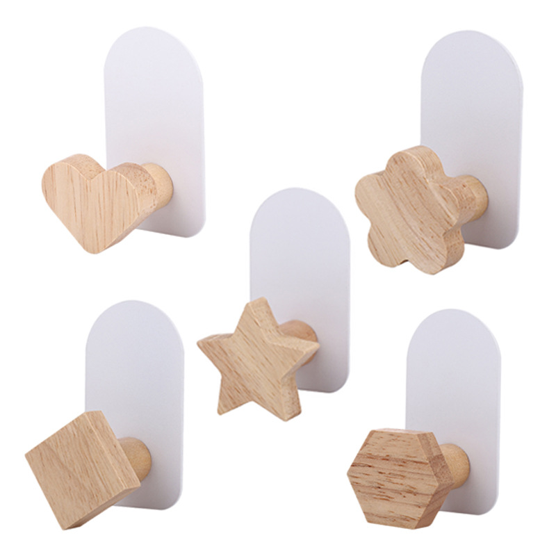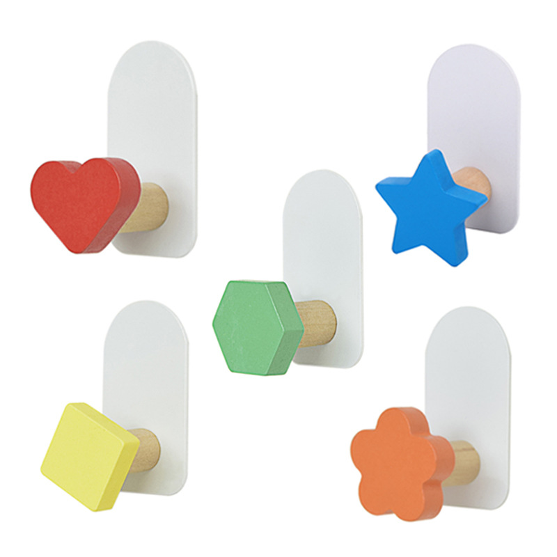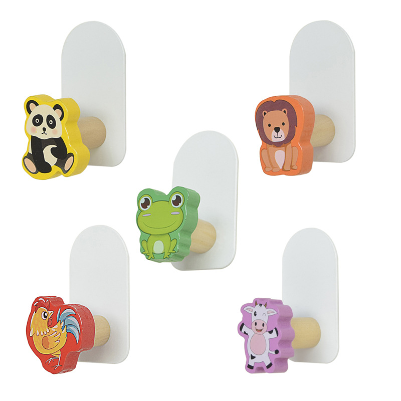 Cartoon Creative Hanger behind the Door Bathroom Entrance Wooden Hook No Punching on Walls Paste Hook Wholesale